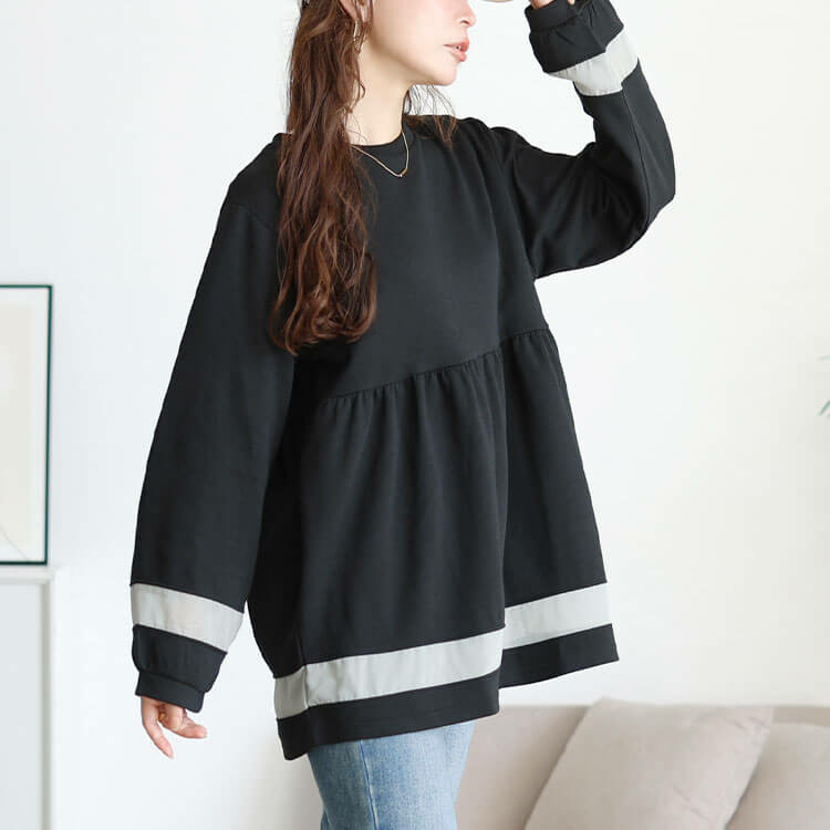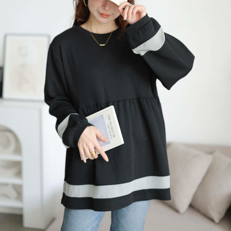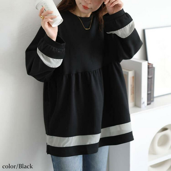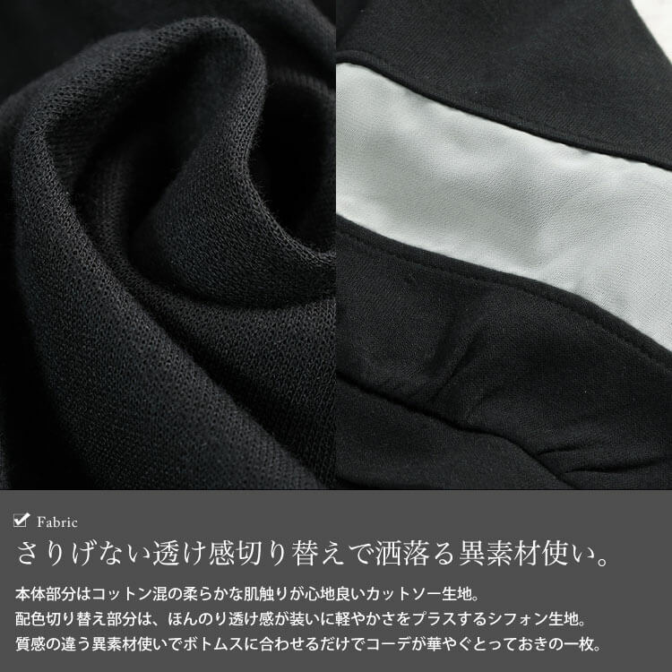 裾・袖口の配色シフォン切り替えで装いにスポーティな雰囲気を纏ったアクセントをプラス☆