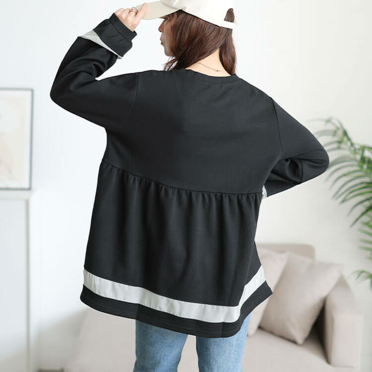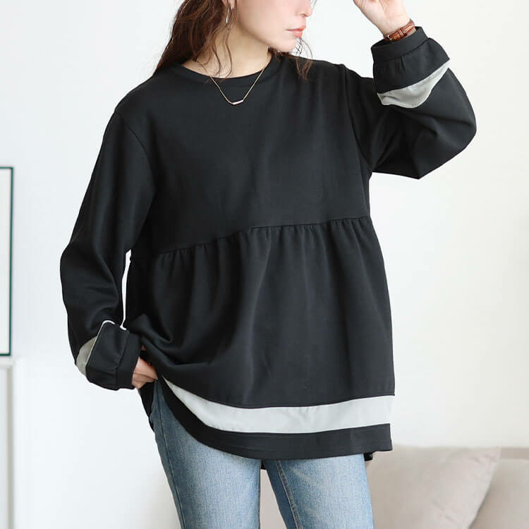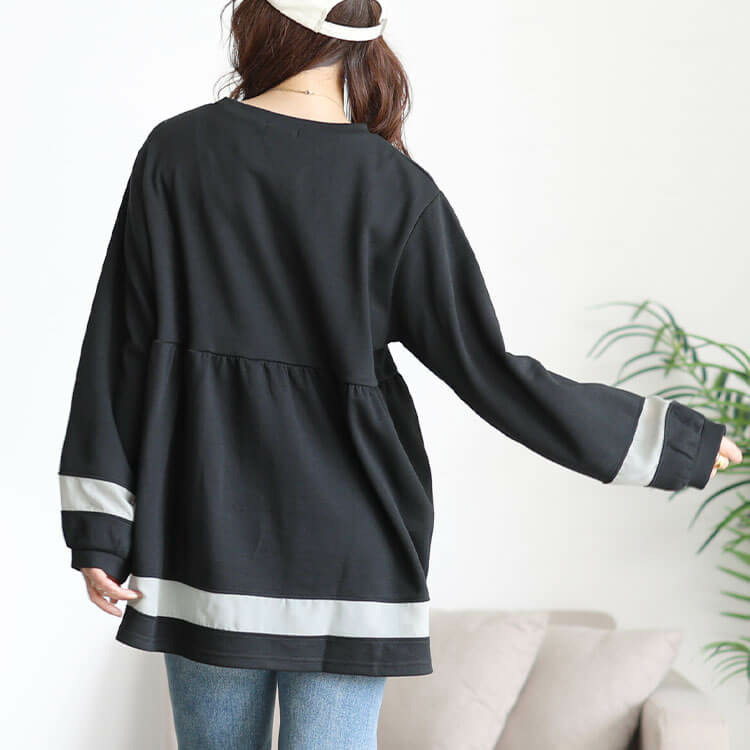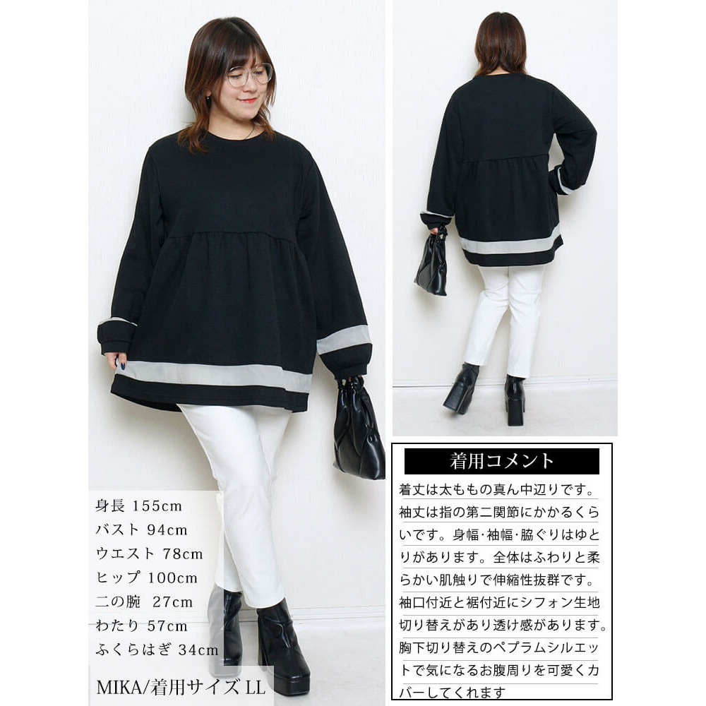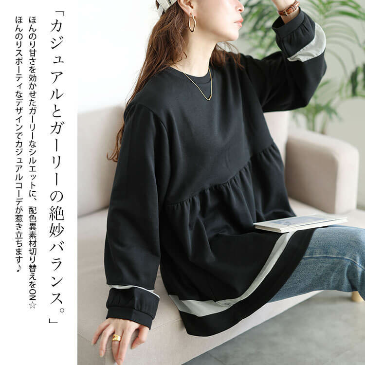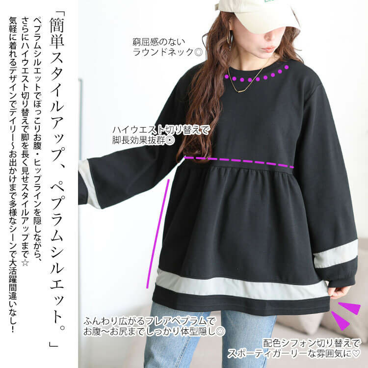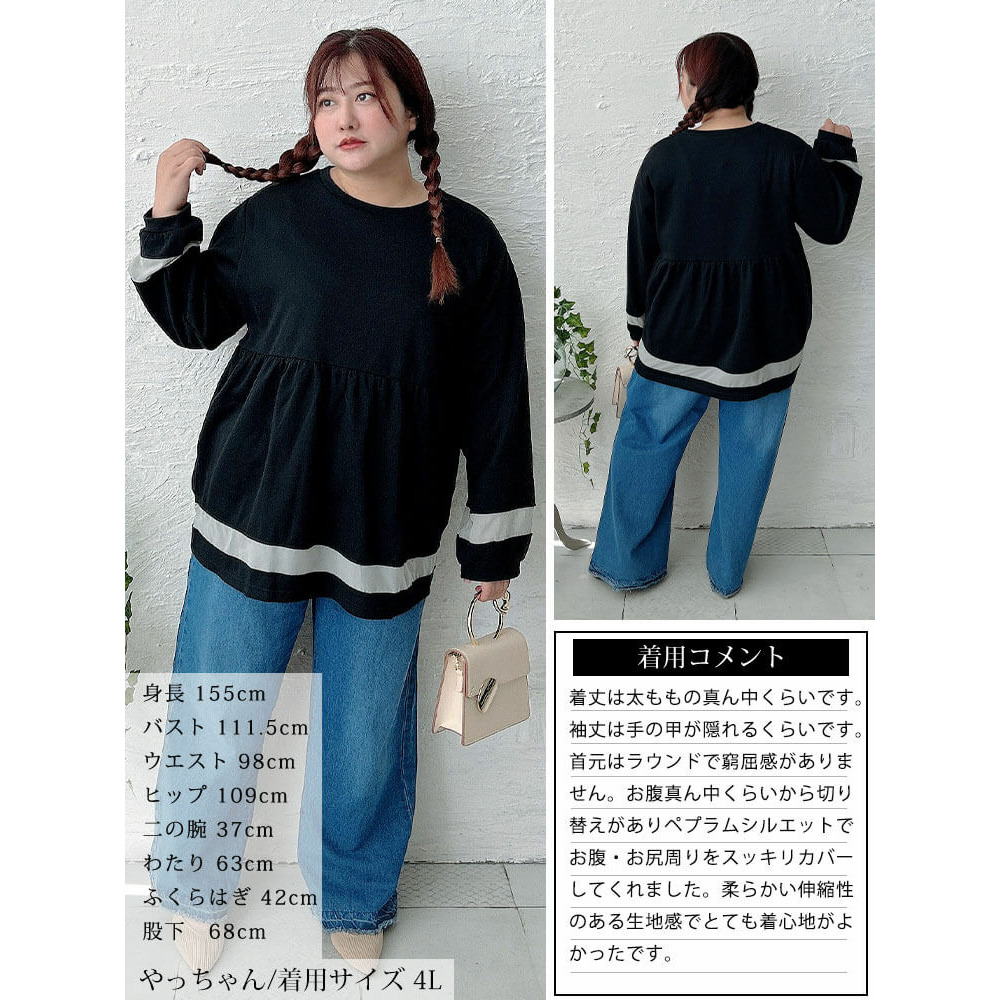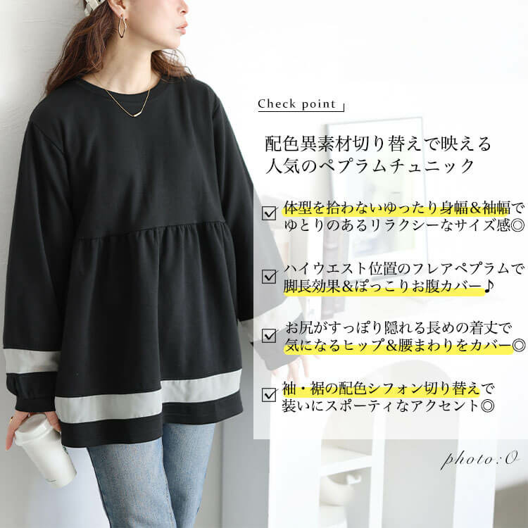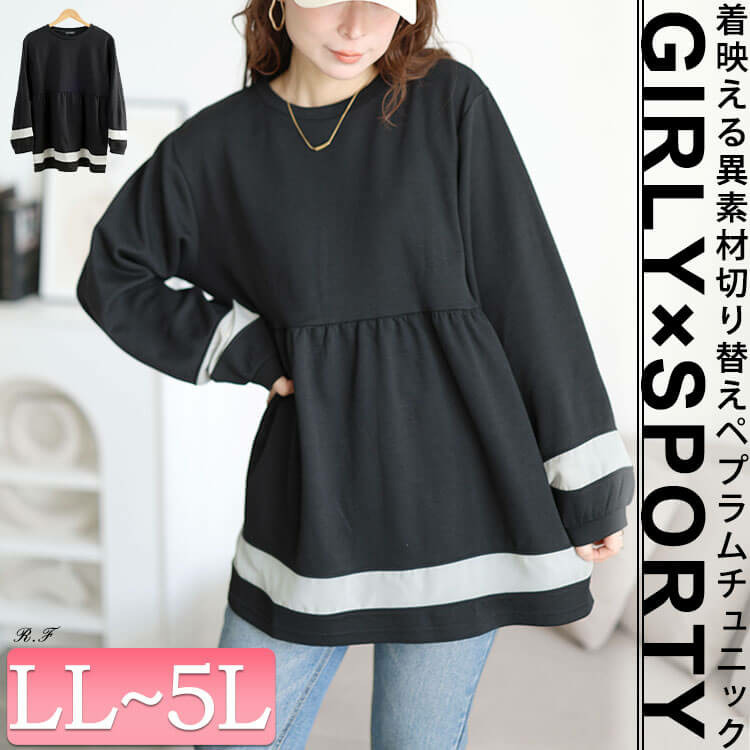 配色異素材切り替えペプラムチュニック大きいサイズ レディース