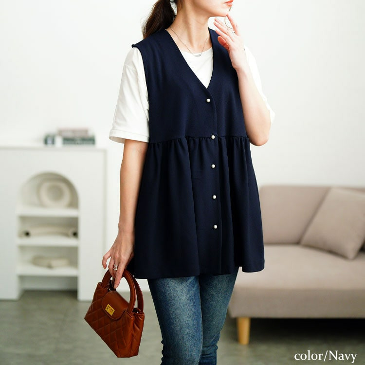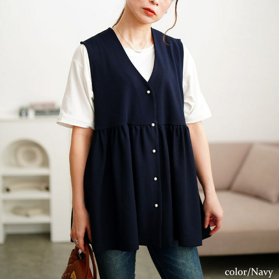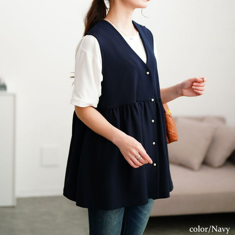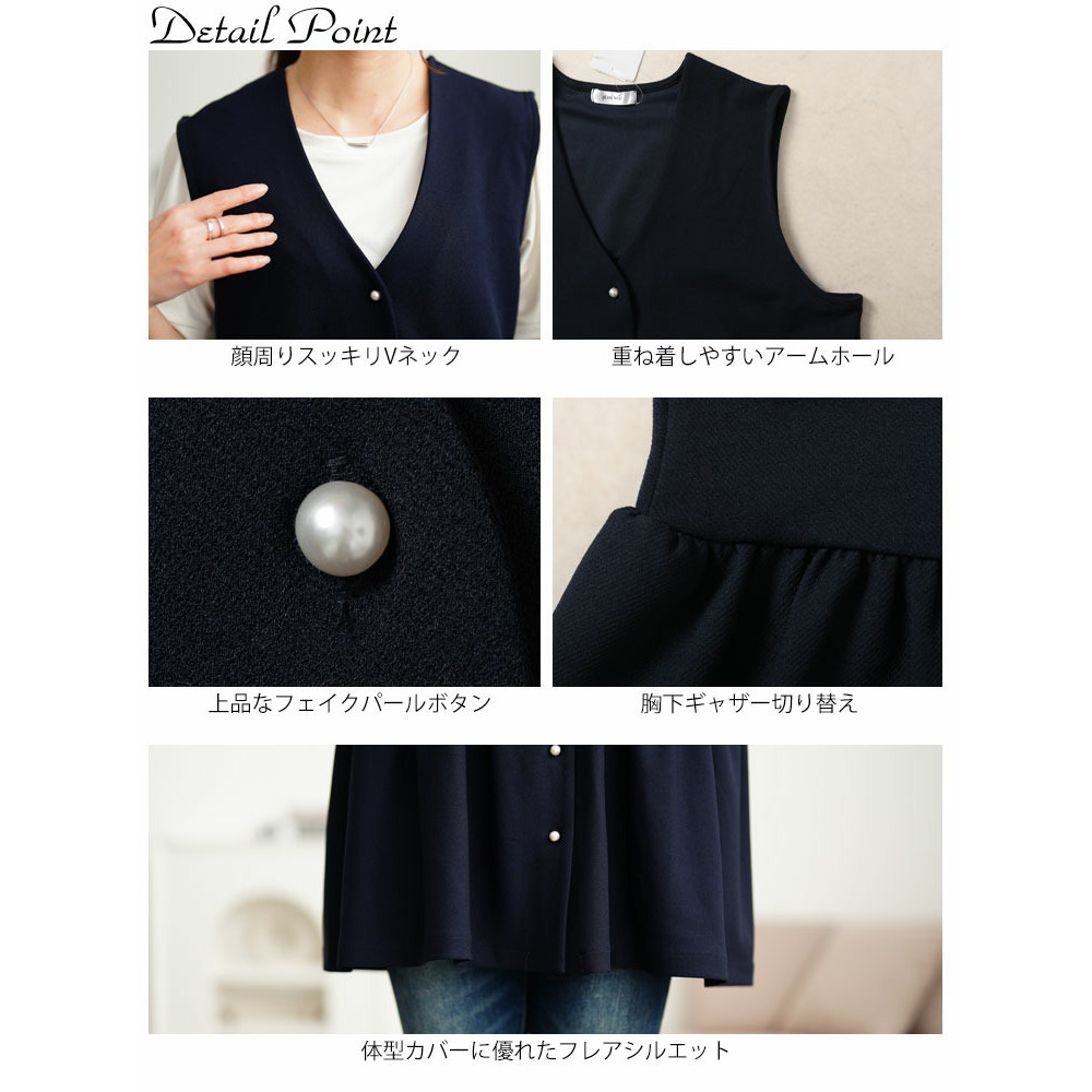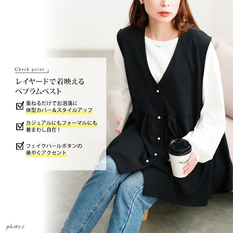 • 大きいサイズ レディース パールボタンペプラムベスト5