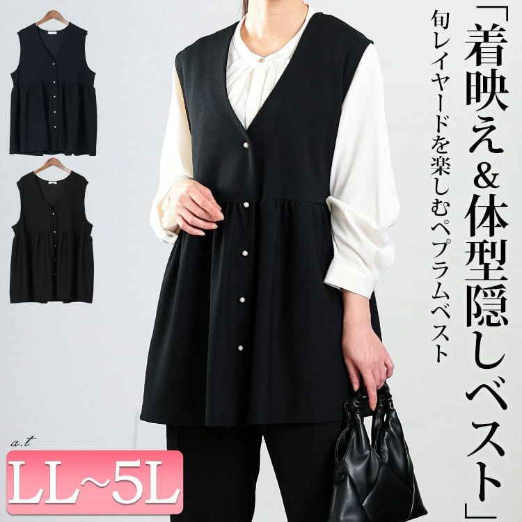 • 大きいサイズ レディース パールボタンペプラムベスト10