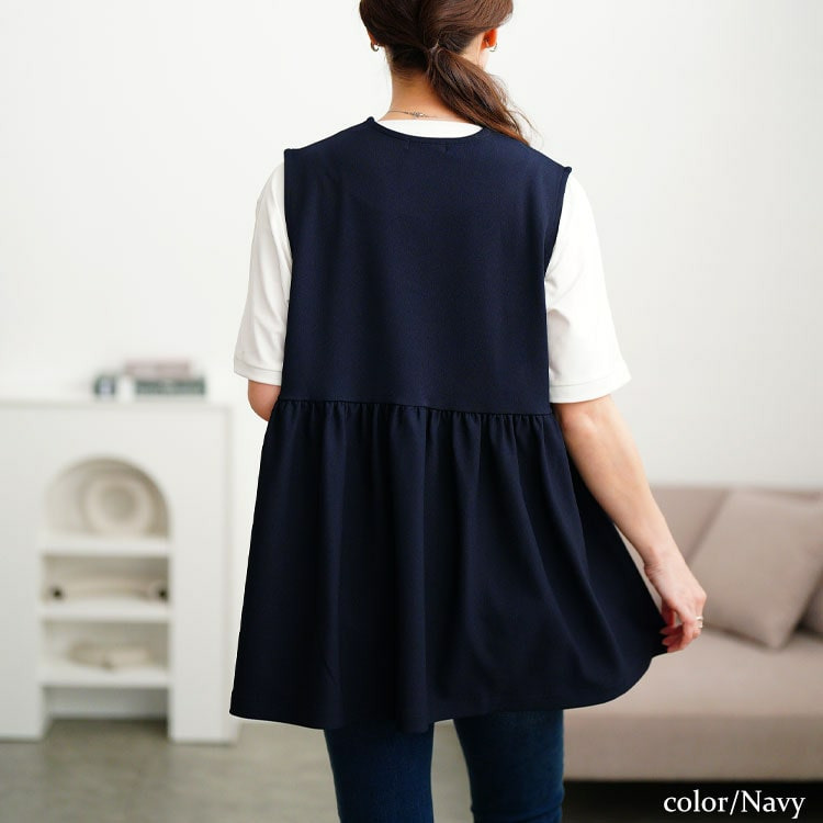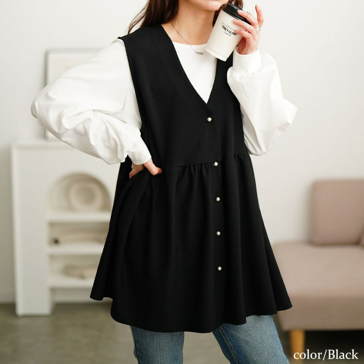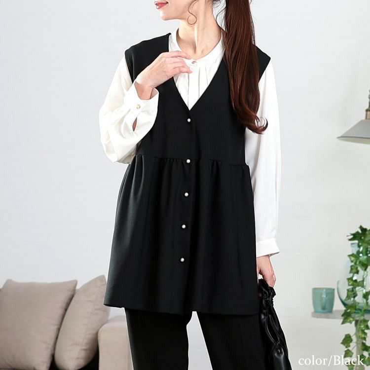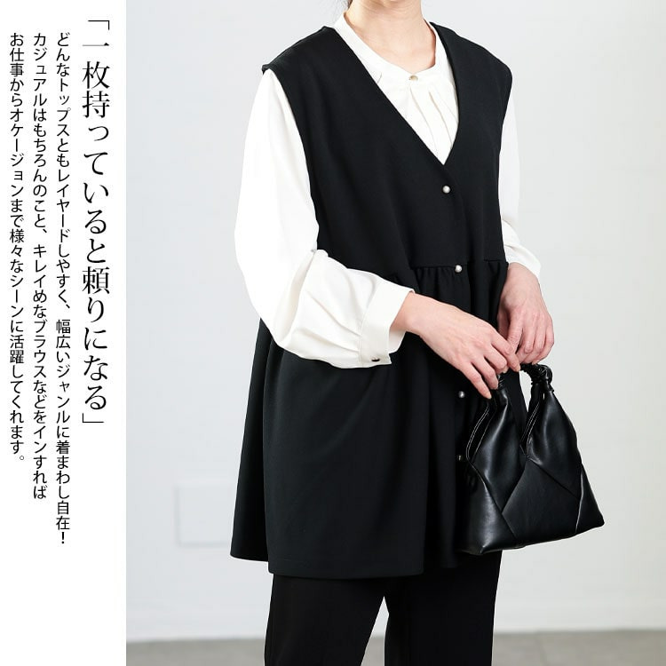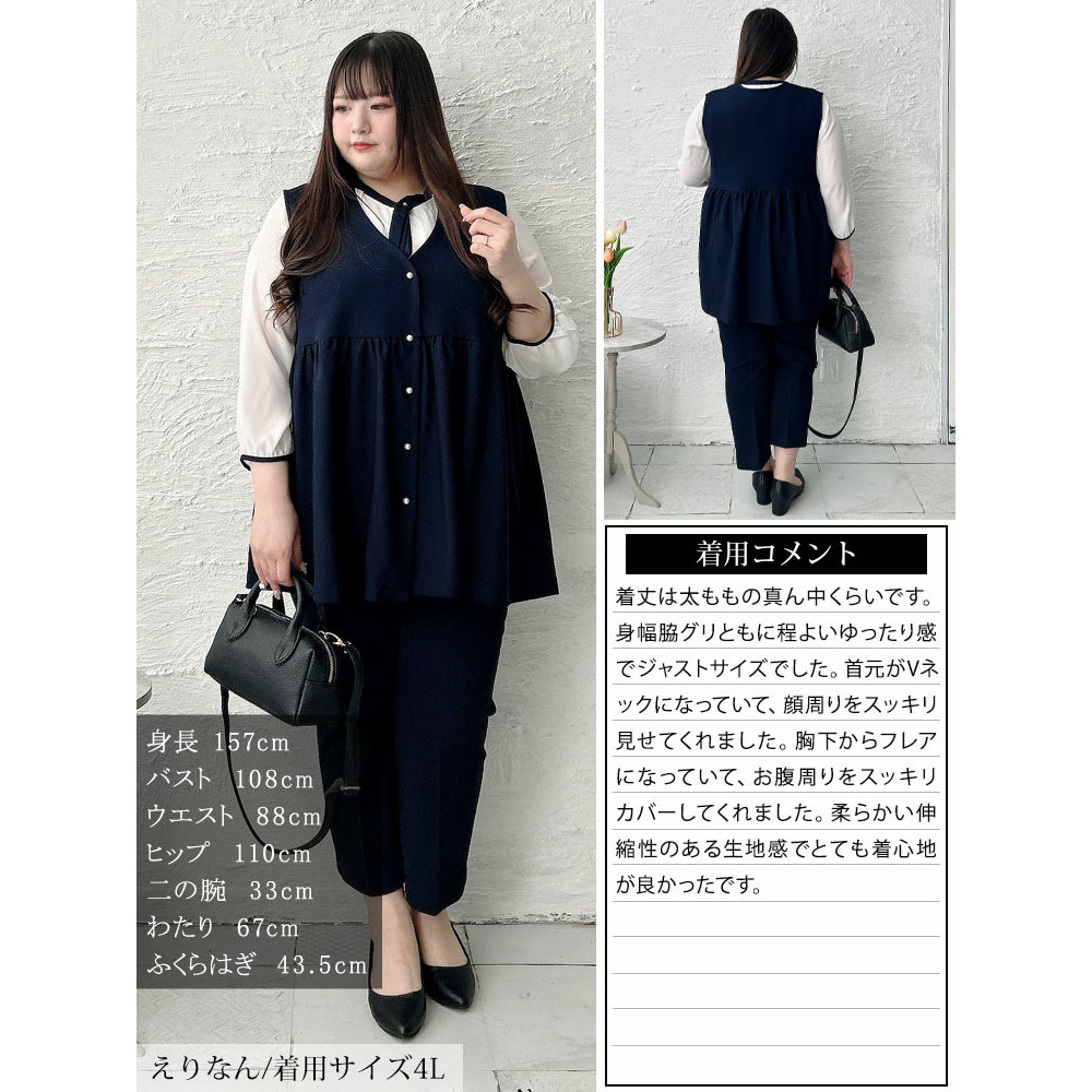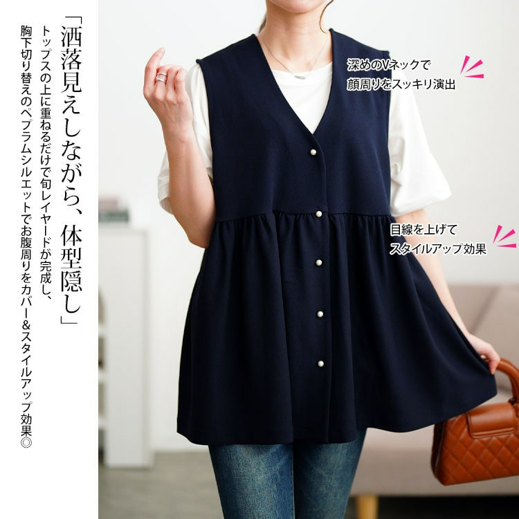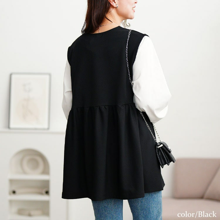 • 大きいサイズ レディース パールボタンペプラムベスト11