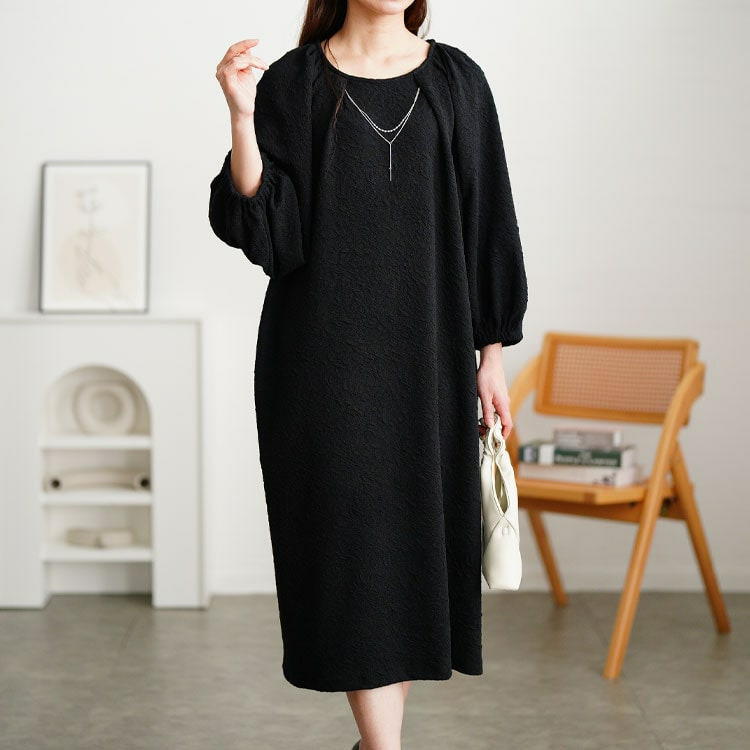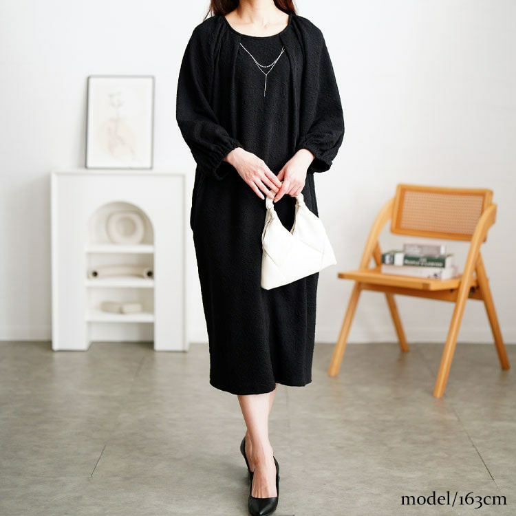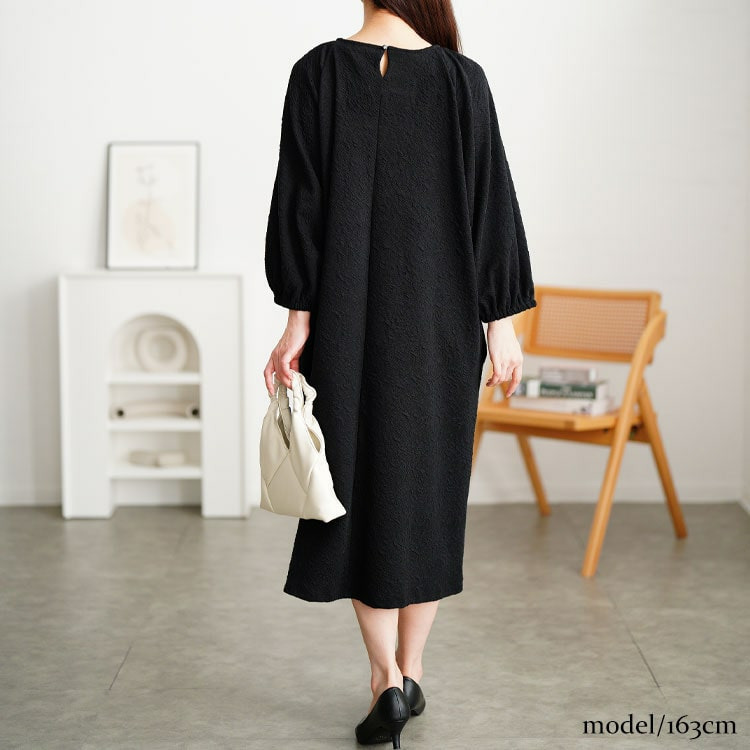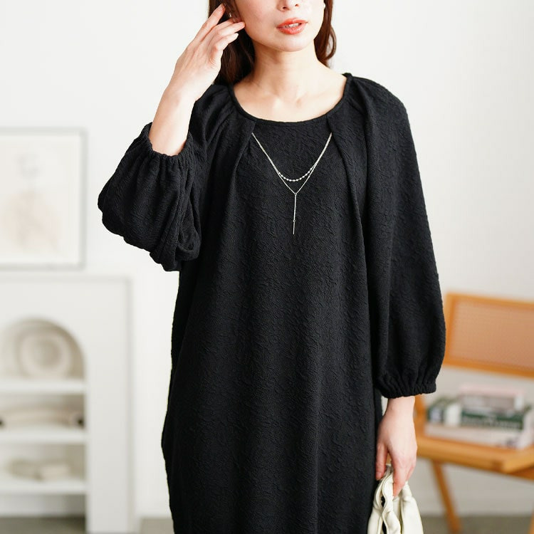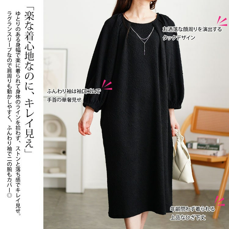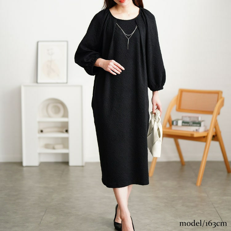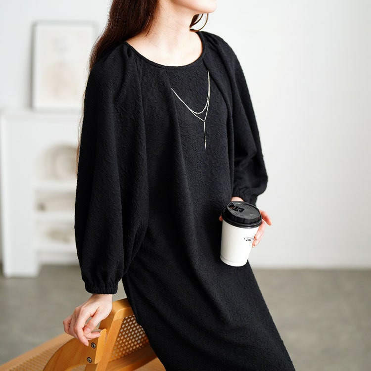 ゆとりのあるシルエットで体型カバーし、ストンと落ち感でキレイ見せも◎