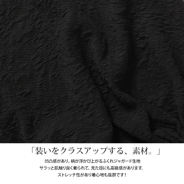 凹凸感のあるふくれジャガード生地で見た目にも高級感があり、ストレッチが効いているので着心地も抜群です!