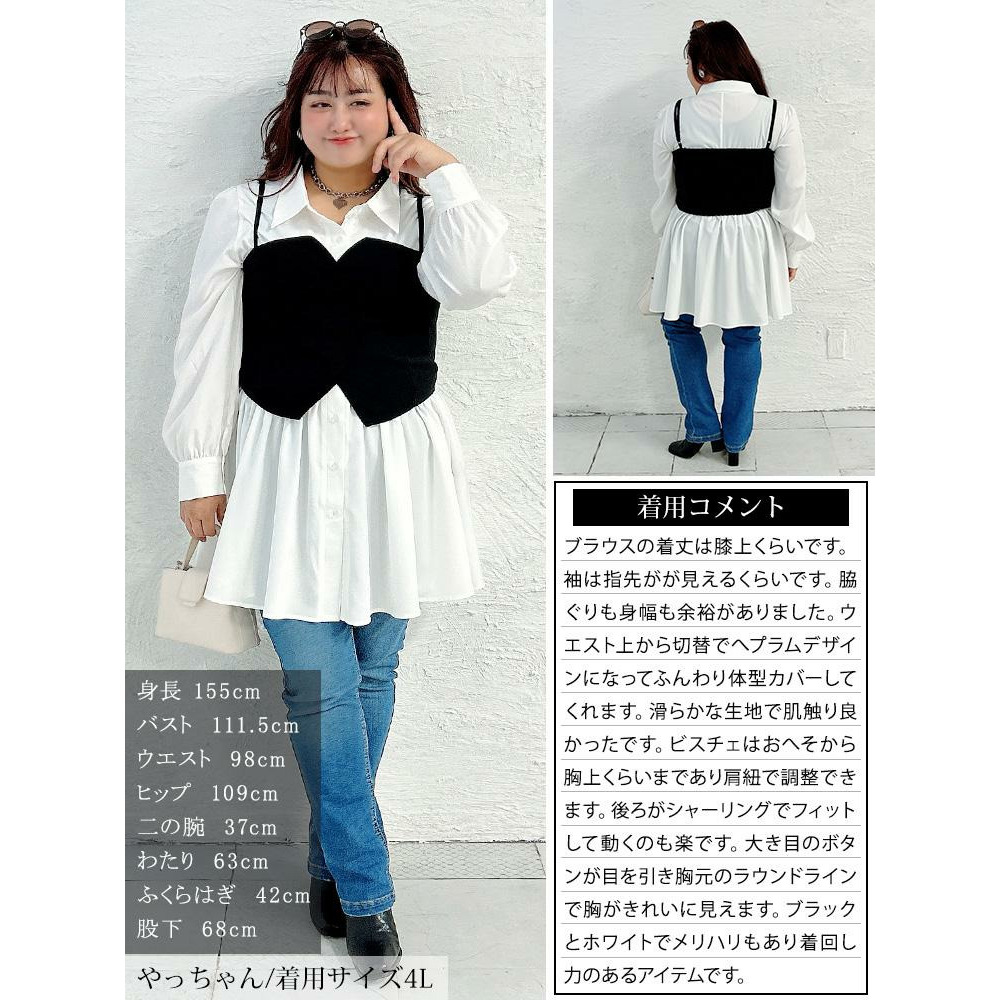 • 大きいサイズ レディース ペプラムシャツチュニック&ビスチェ2点セット10