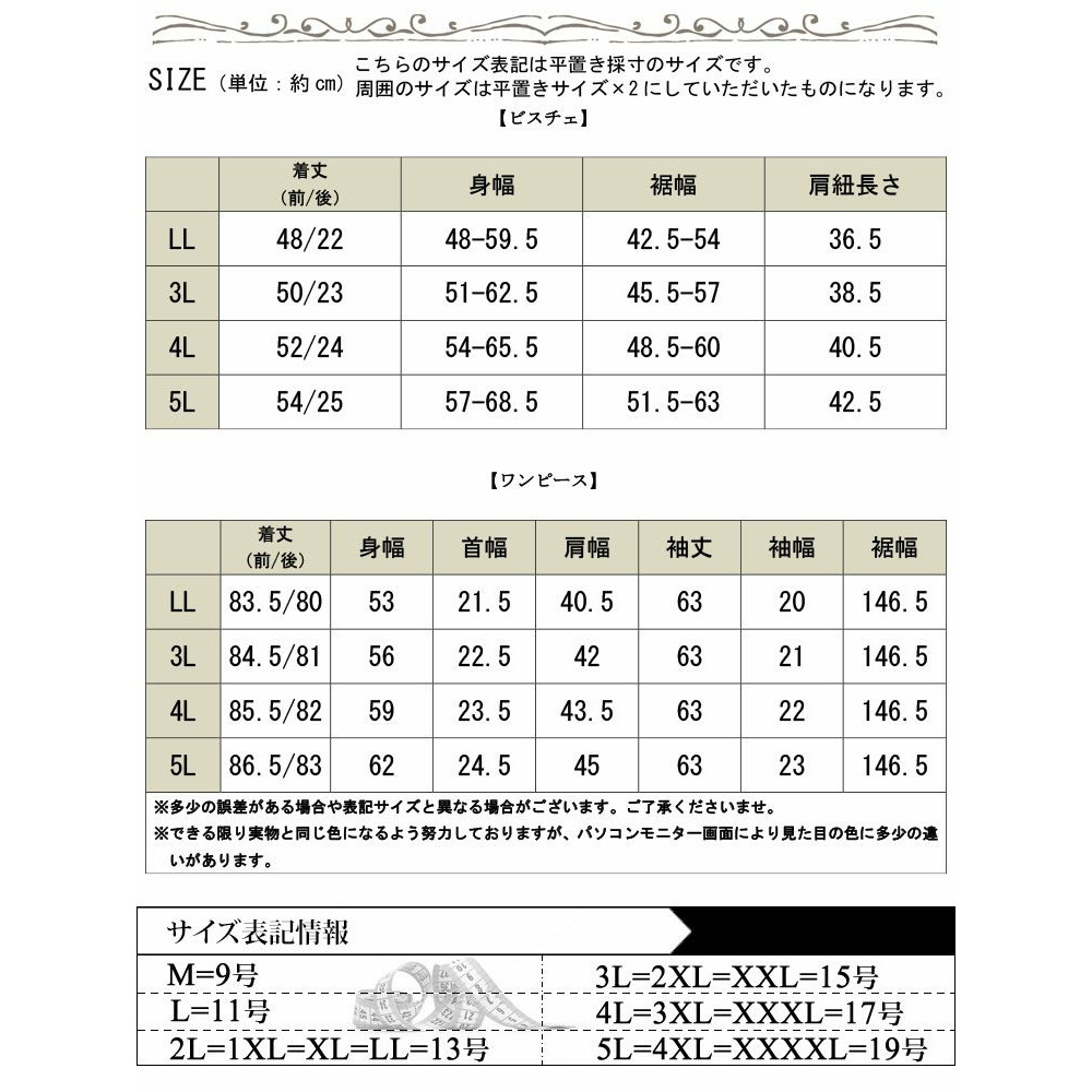 サイズ表記LL3L4L5L