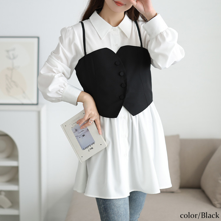 • 大きいサイズ レディース ペプラムシャツチュニック&ビスチェ2点セット17