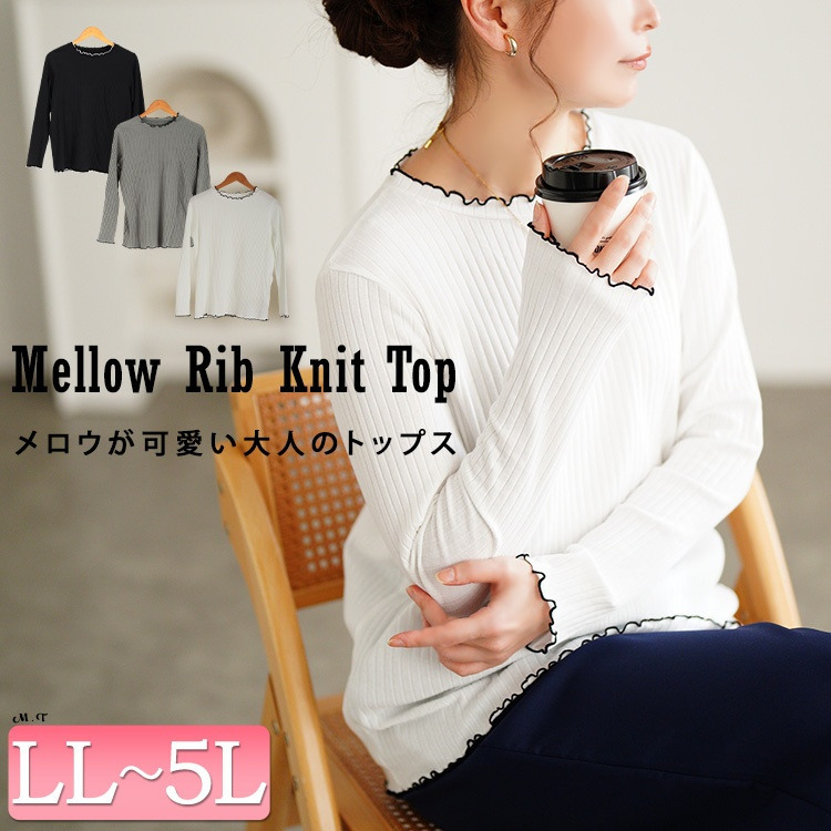 大きいサイズ レディース 配色メロープチハイネックリブトップス