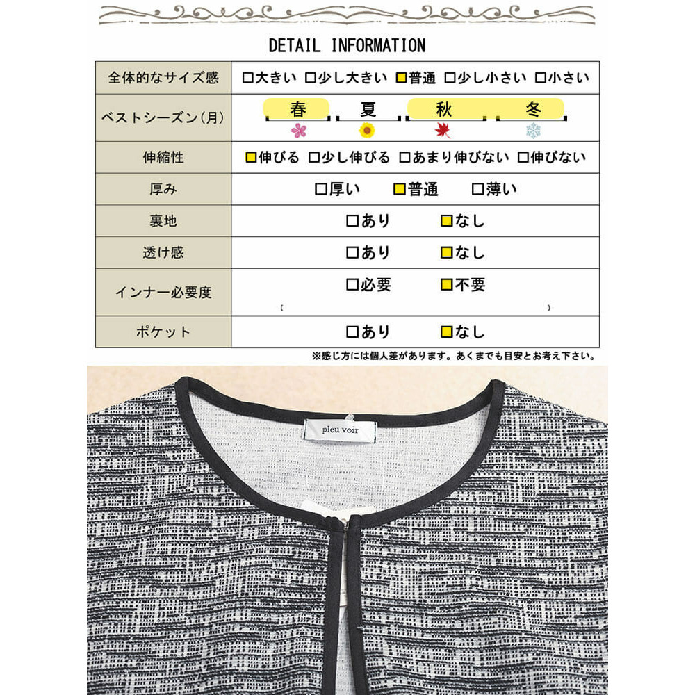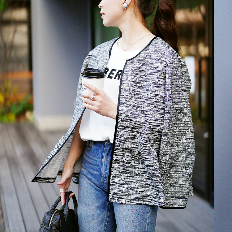 ストレッチツイードなので重ね着をしても窮屈感なくご着用していただけます◎
