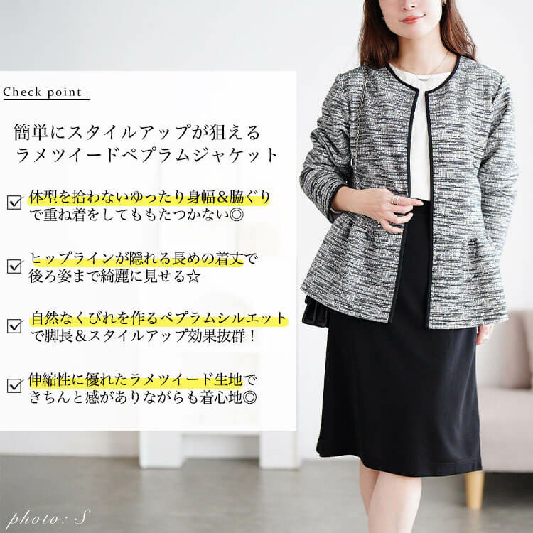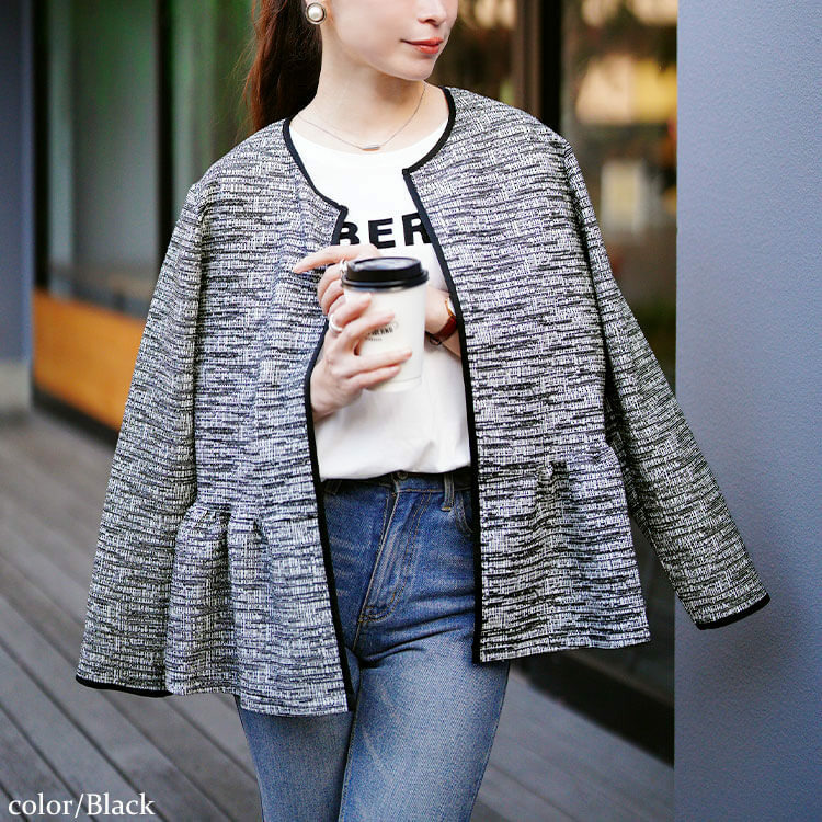 ラメツイードノーカラーペプラムジャケットの登場です☆