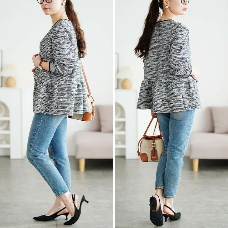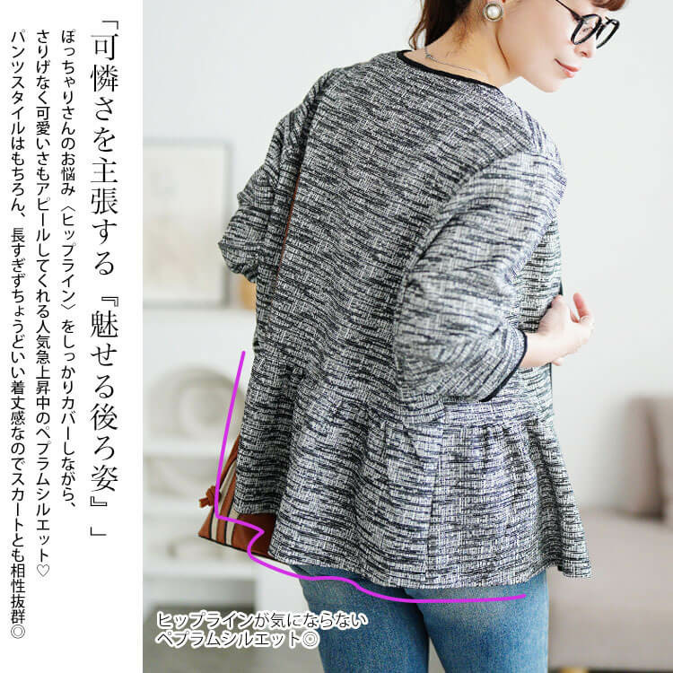 ウエストからふわっと広がるペプラムシルエットが自然にくびれをつくりヒップラインをカバー♪