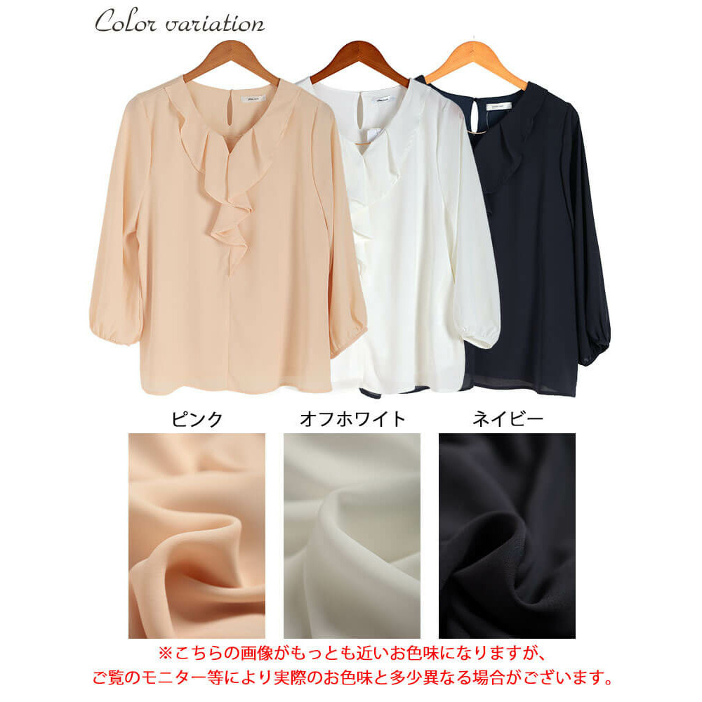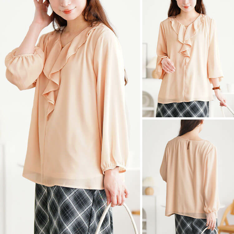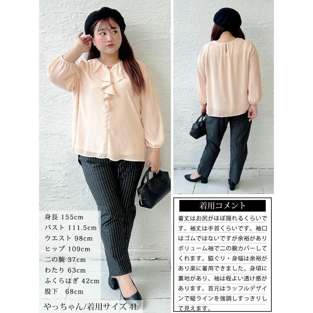 大きいサイズ レディース ゴールドパーツ付きラッフルブラウス