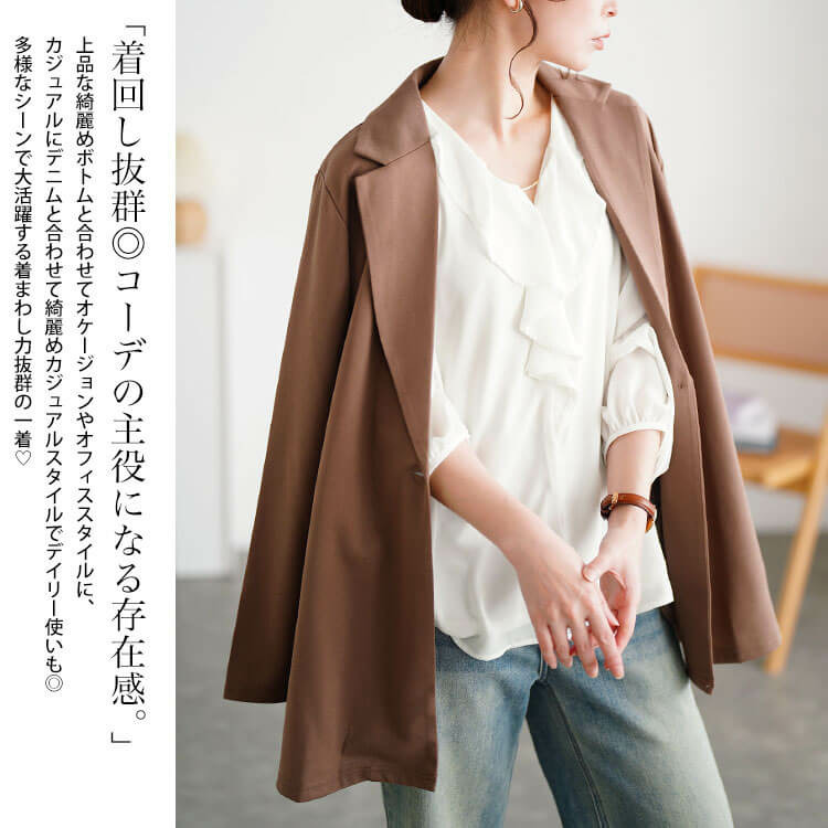 体型を拾わないゆったりとした身幅設計できっちりとした見た目とは反対にストレスフリーな着心地◎