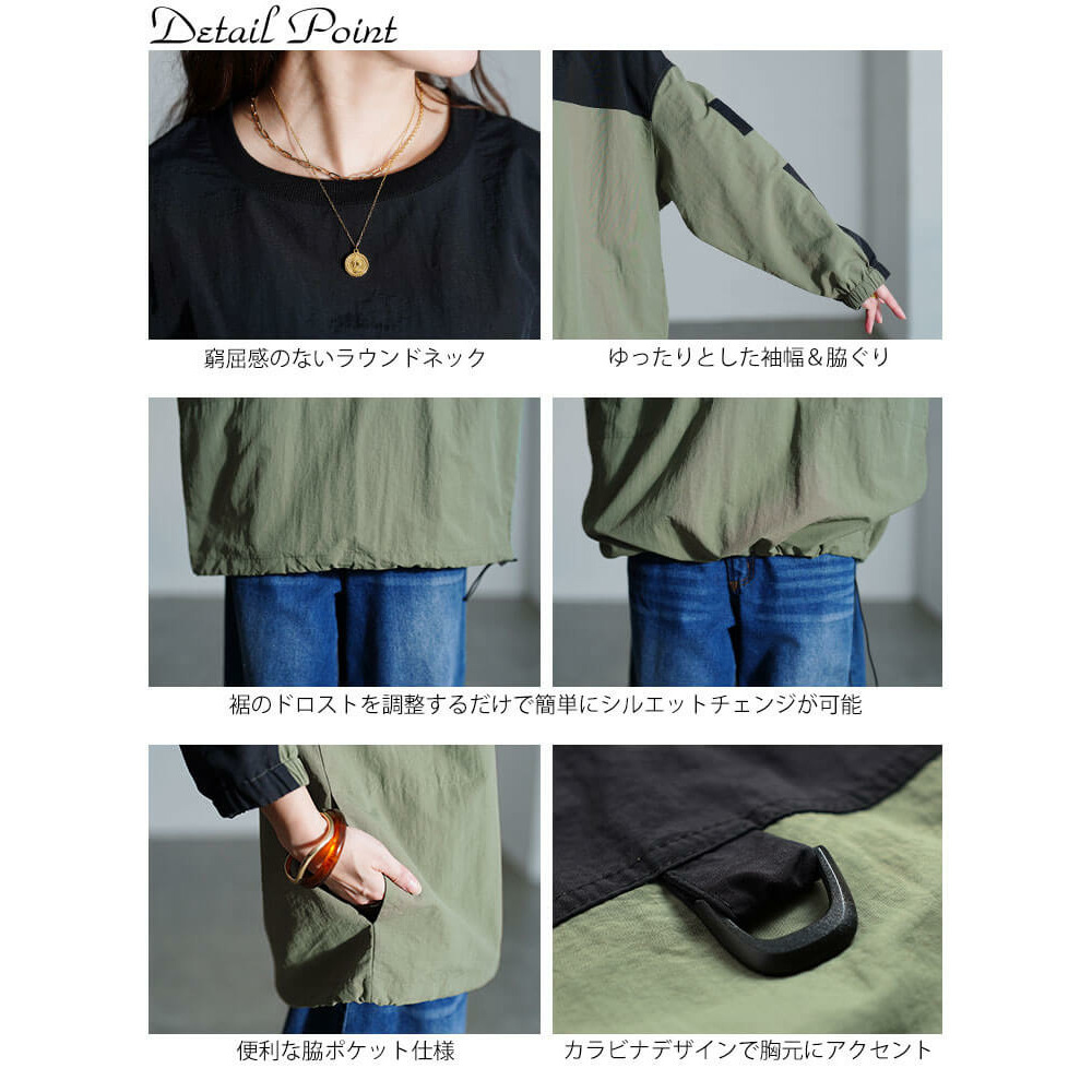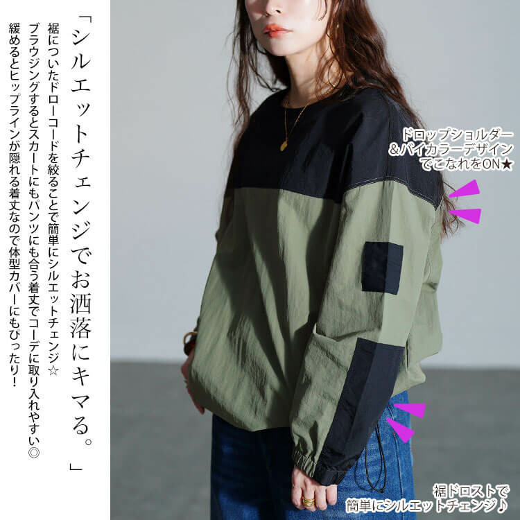 裾ドロストで簡単にシルエットチェンジができるのでボトムに合わせて楽しめます☆