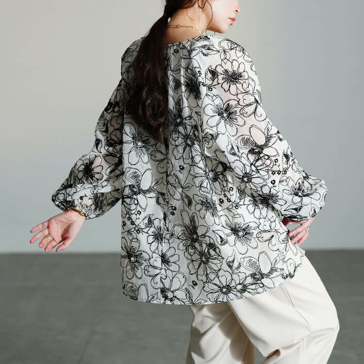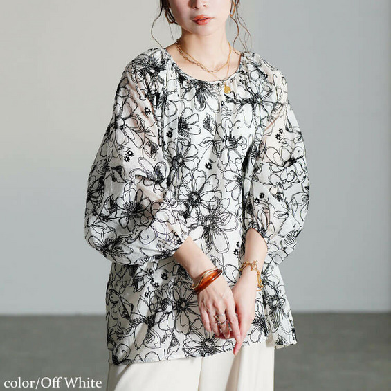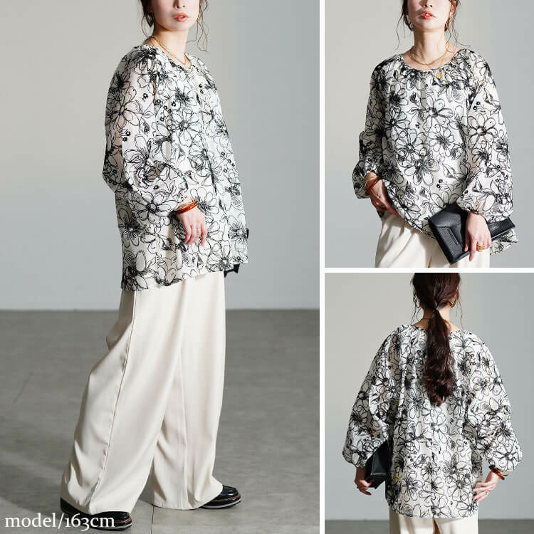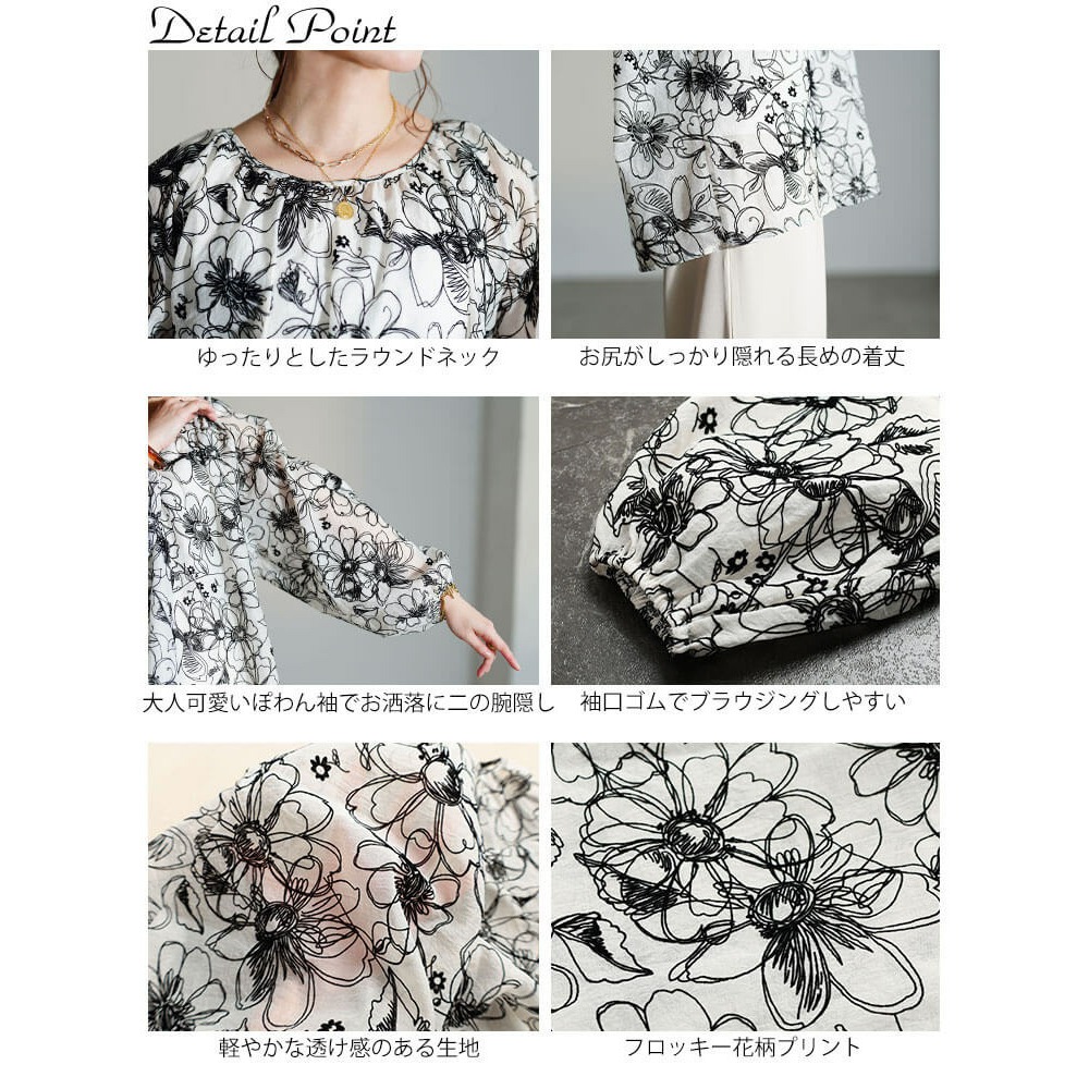 • 大きいサイズ レディース フロッキー花柄オーガンジーギャザーブラウス15