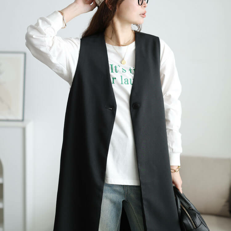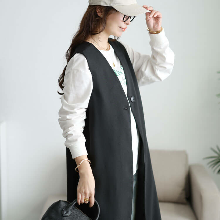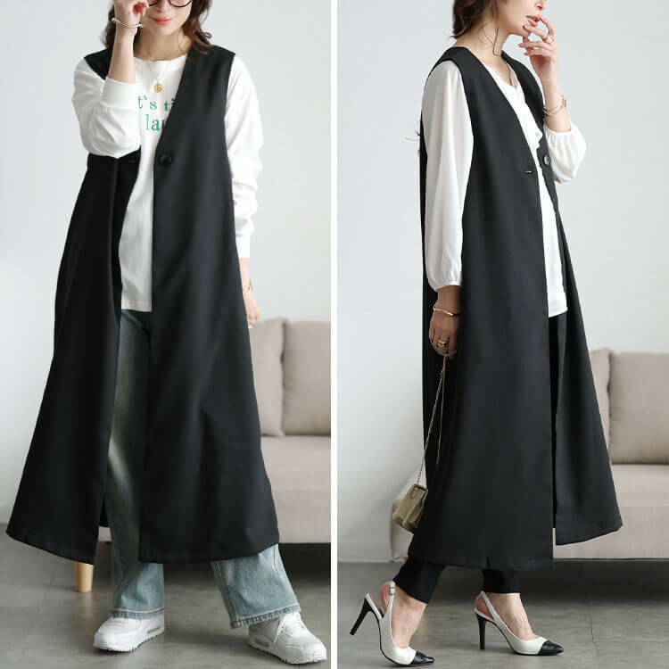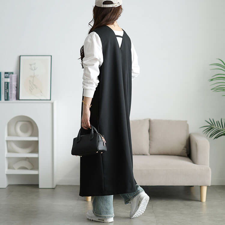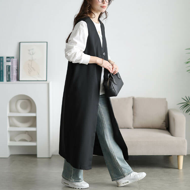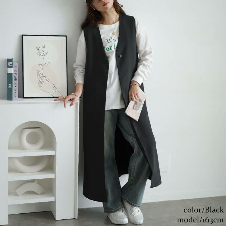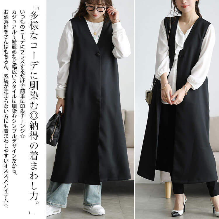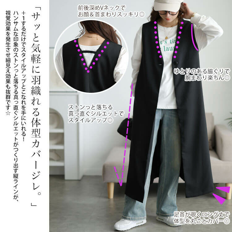 真っ直ぐシルエットがつくり出す縦ラインで細見え効果も抜群です◎