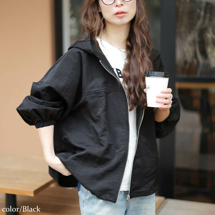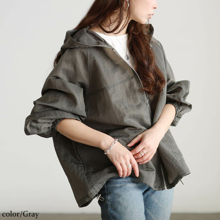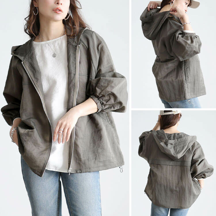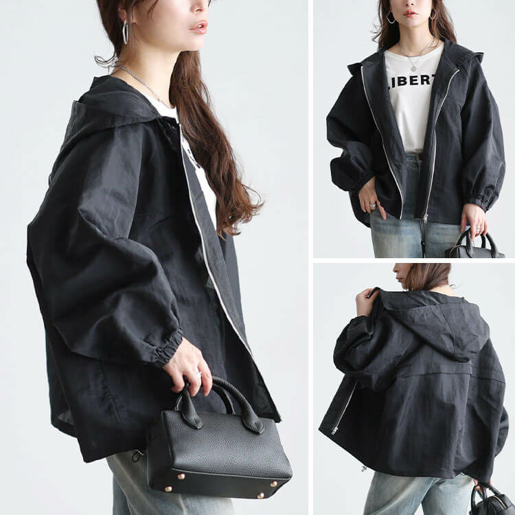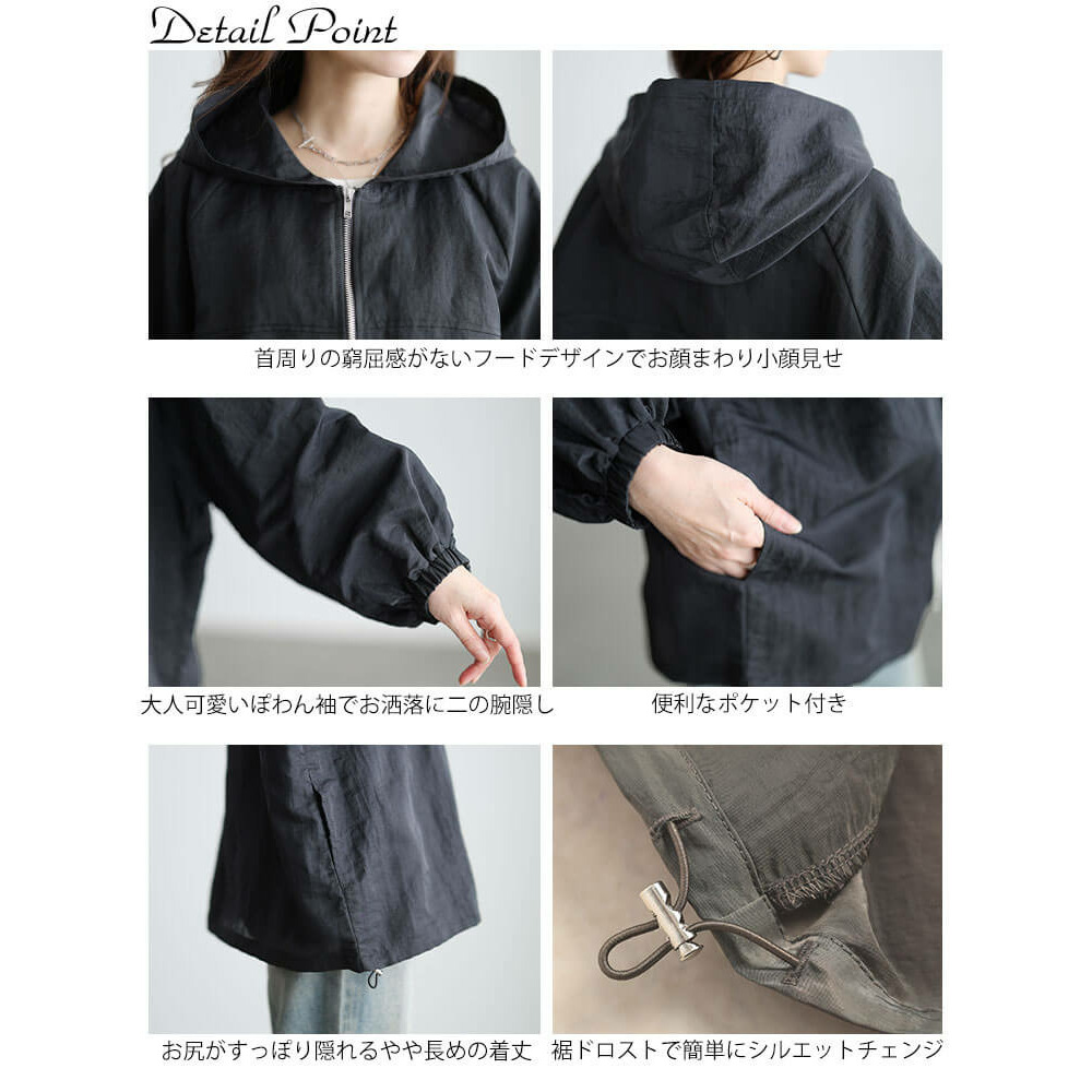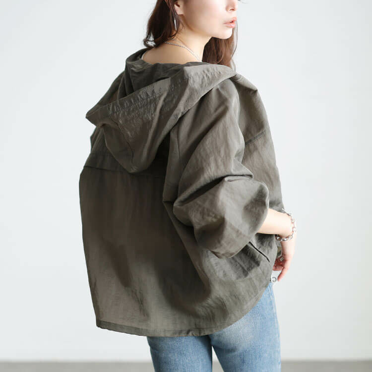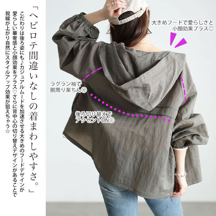 大きめのフードデザインが女性らしい華奢感と小顔効果をプラス◎