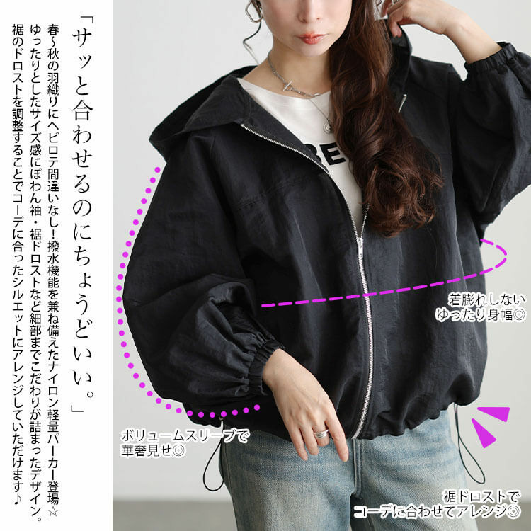 裾ドロストを調整しコーデに合ったシルエットにアレンジ自在♪