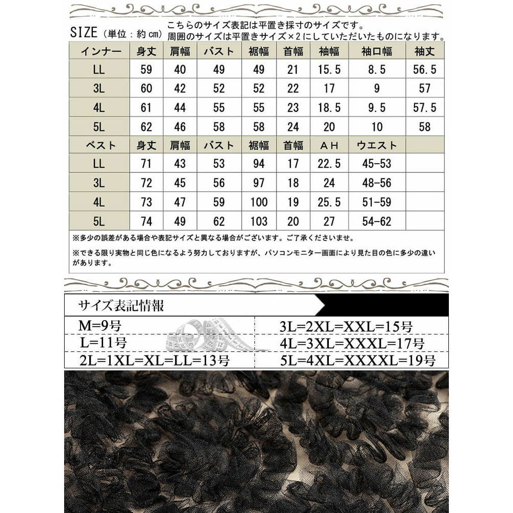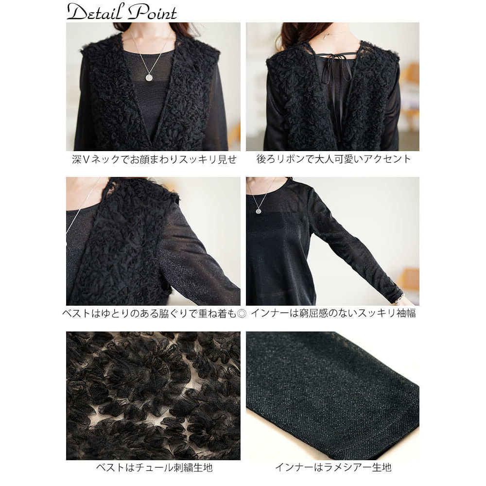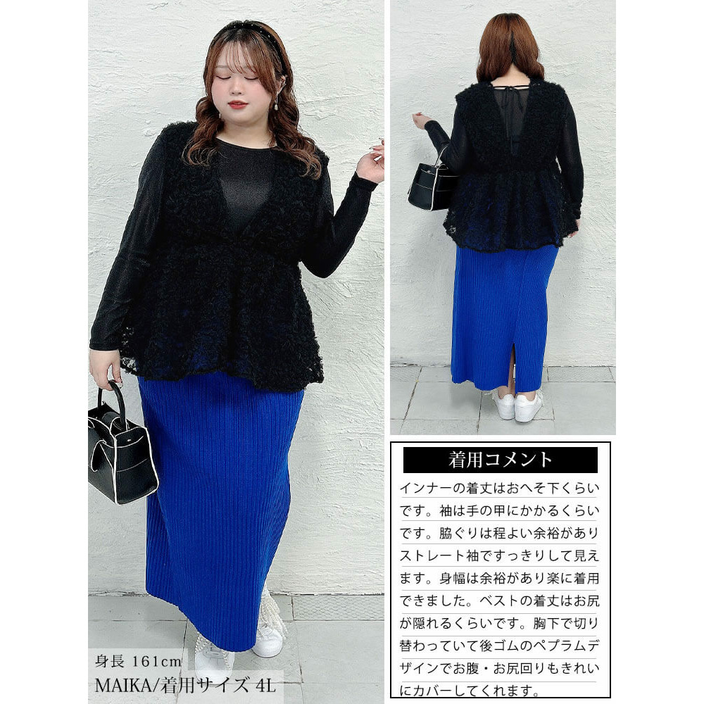 • 大きいサイズ レディース チュール刺繍ペプラムベスト&シアーラメロンT2点セット4