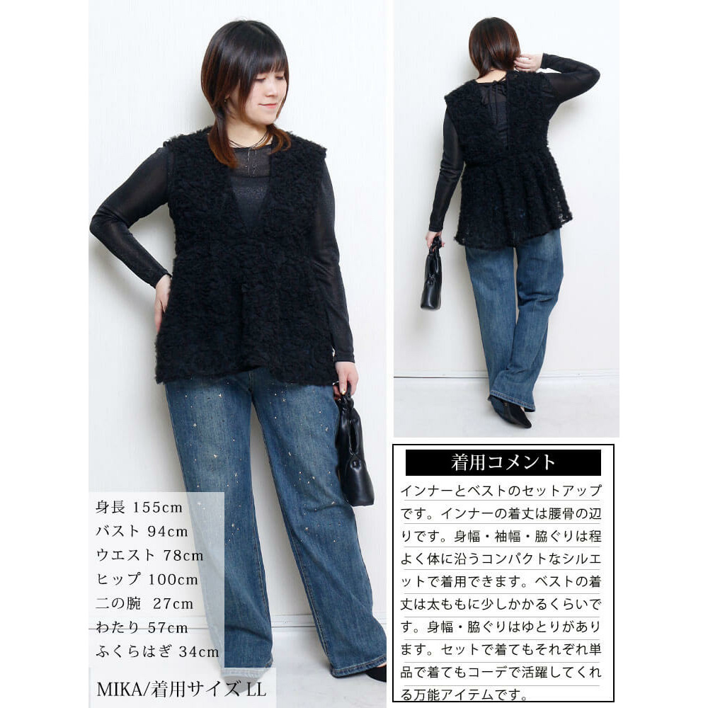 • 大きいサイズ レディース チュール刺繍ペプラムベスト&シアーラメロンT2点セット6