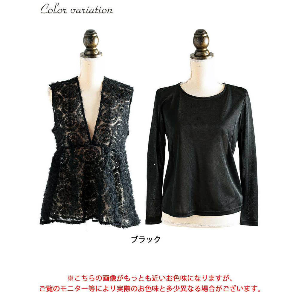 • 大きいサイズ レディース チュール刺繍ペプラムベスト&シアーラメロンT2点セット10