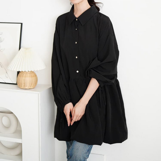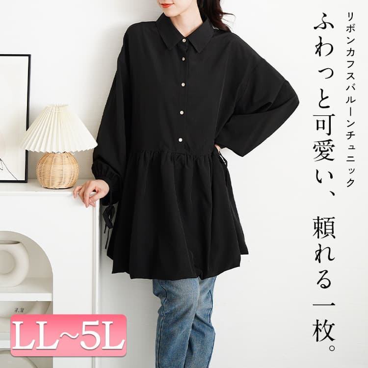 • 大きいサイズ レディース リボンカフスバルーンペプラムチュニック1