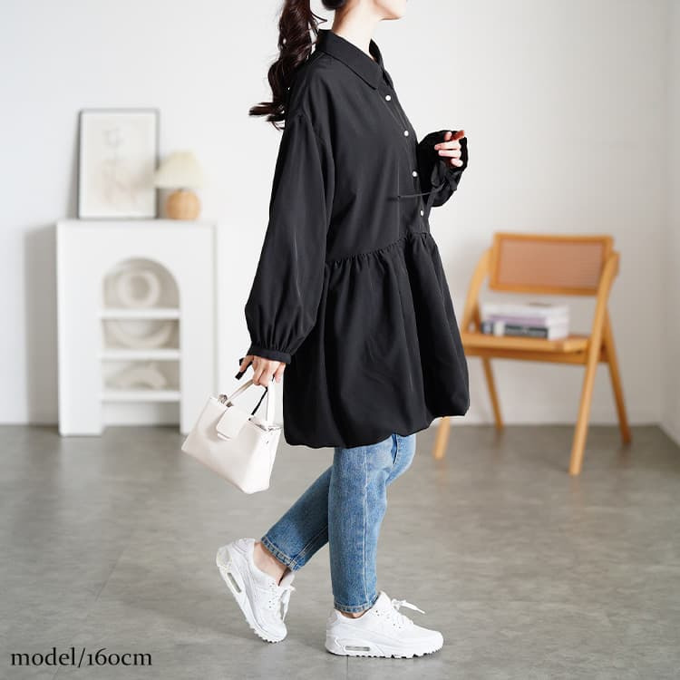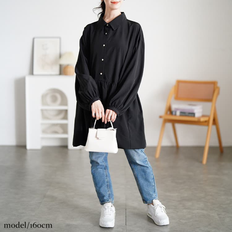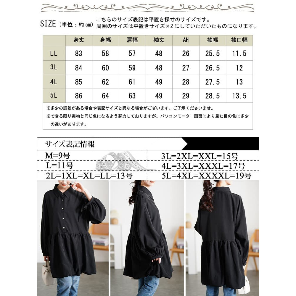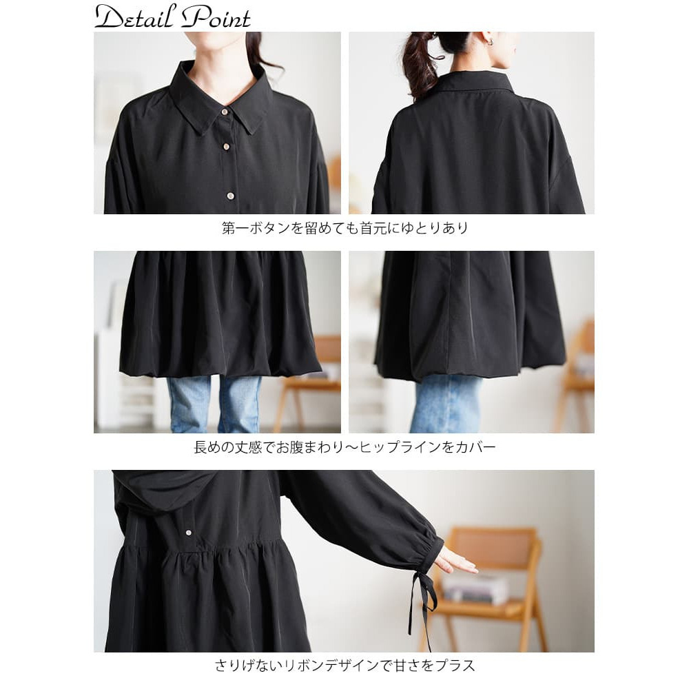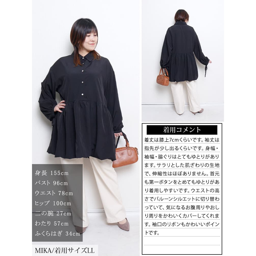 • 大きいサイズ レディース リボンカフスバルーンペプラムチュニック17