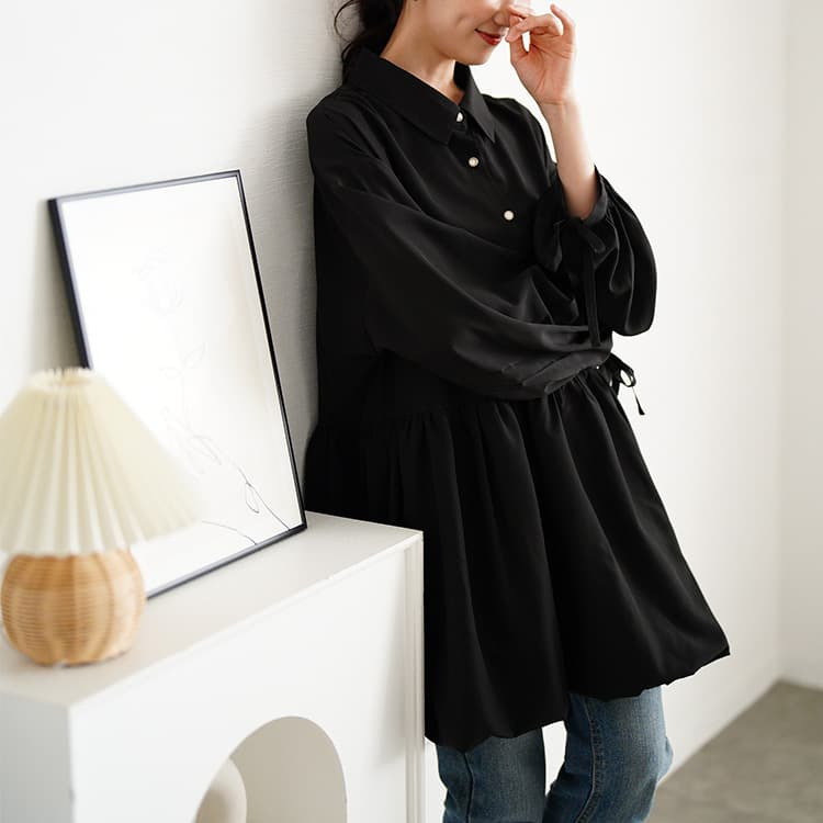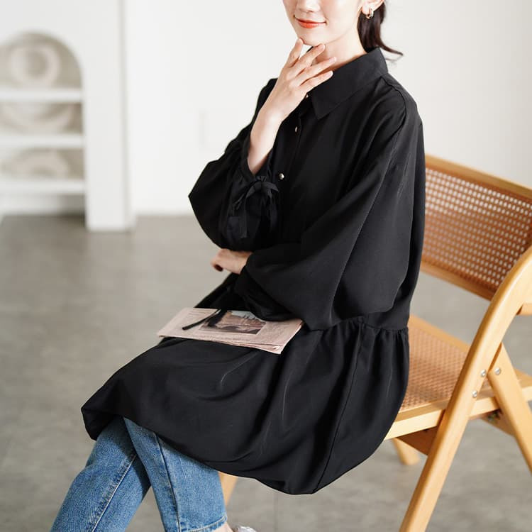 • 大きいサイズ レディース リボンカフスバルーンペプラムチュニック11