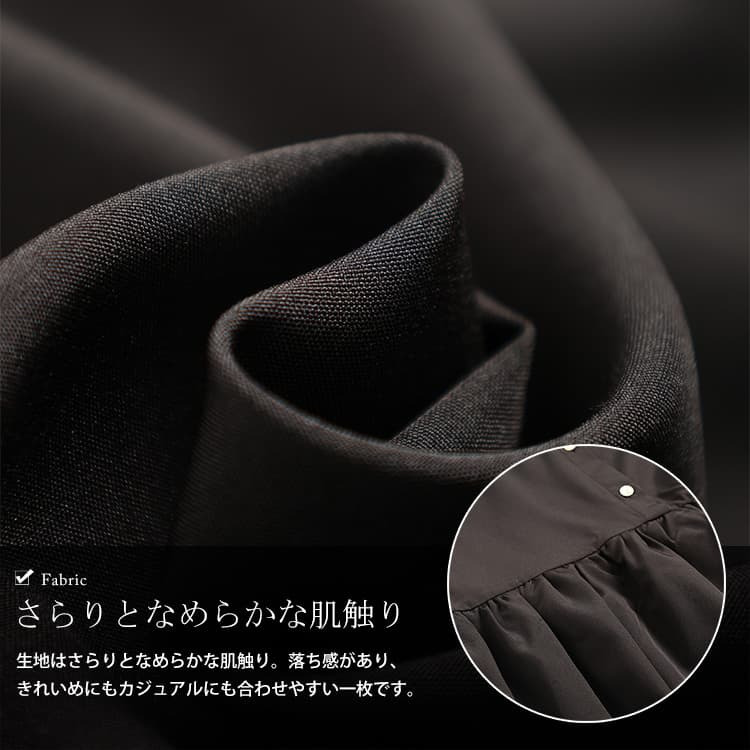 ウエスト位置で切り替えたバルーンシルエットが、気になるお腹やヒップ周りをふんわりカバー。