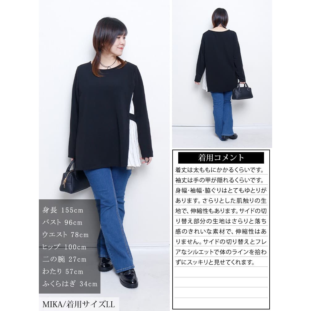 • 大きいサイズ レディース ストライプ切り替えアシンメトリーチュニック11