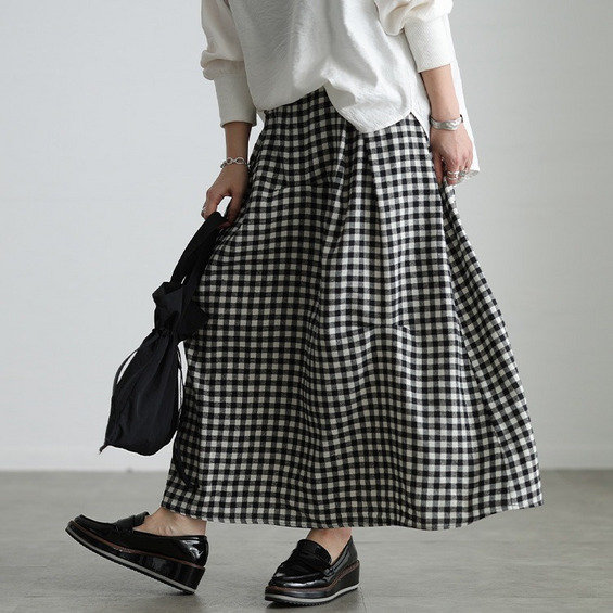 随所にタックを重ねることで、動きのあるシルエットを描き、奥行きを感じさせます。タックが落ち着きのあるふんわりシルエットを生み、レディ感を高めながら体型カバーに。バックウエストゴム仕様でタックインスタイルもすっきり見えし、ストレスフリーな穿き心地。