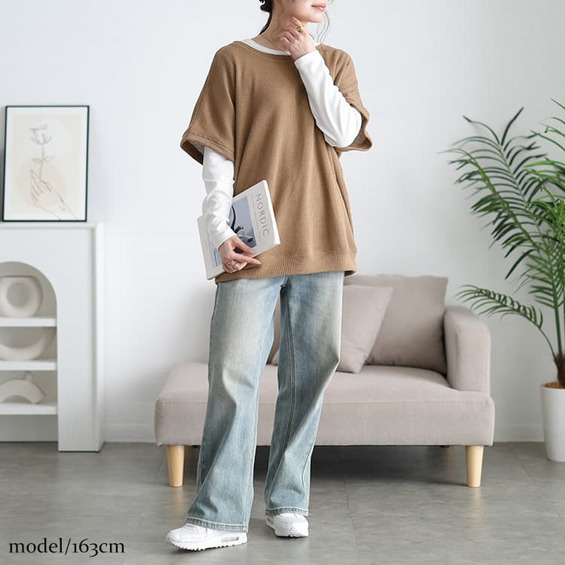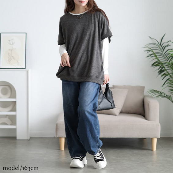 丸みのあるシルエットが、ラフすぎず大人らしい印象を演出します。