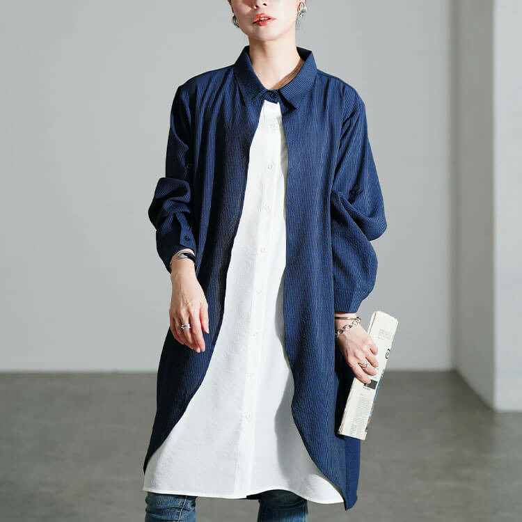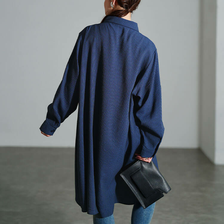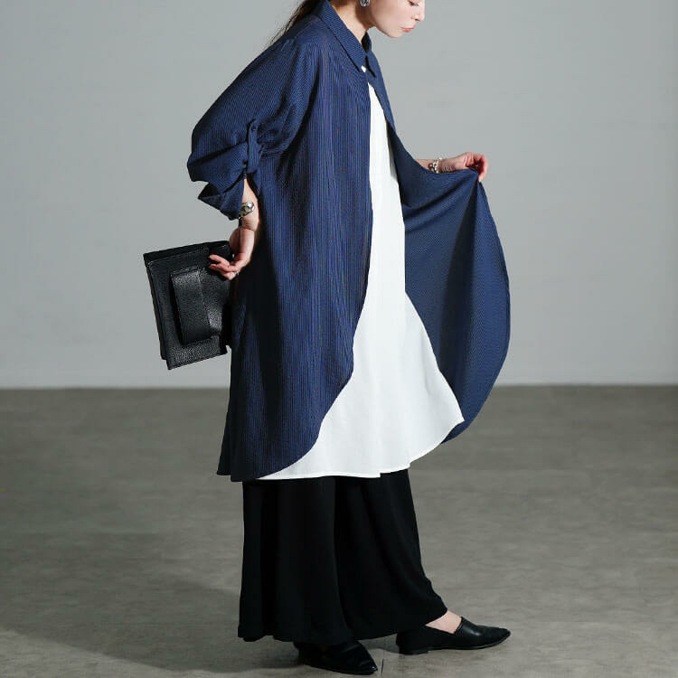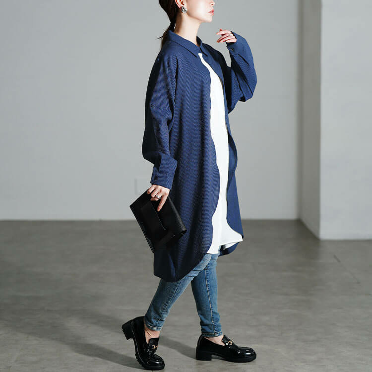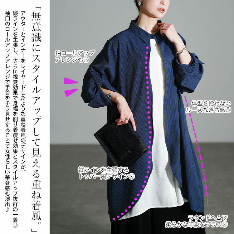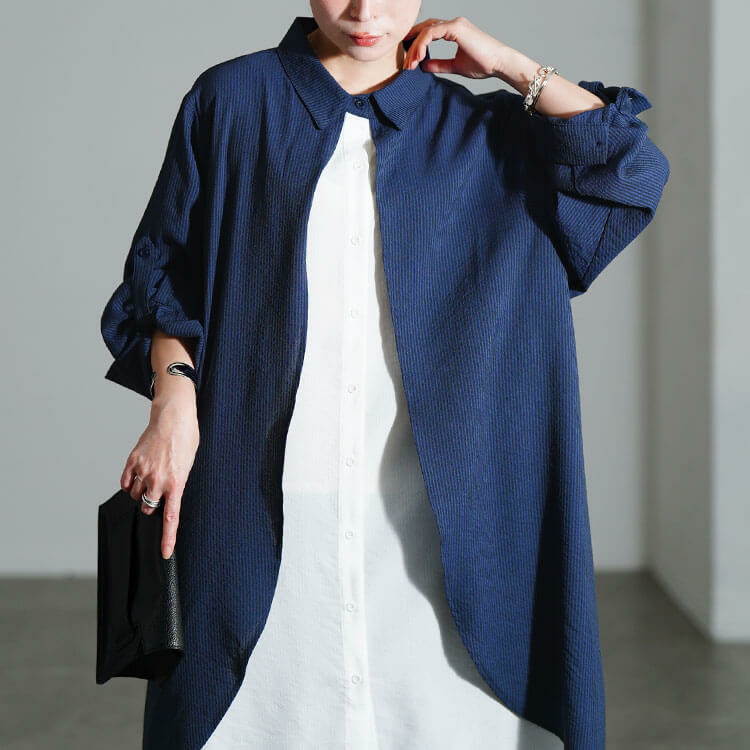 ストンっと落ちるハンサムシルエットで体型を拾わずストレスフリーな着心地◎