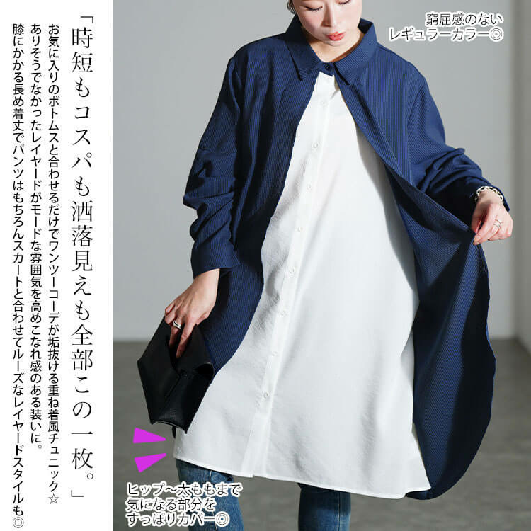 ぽっちゃりさんの気になるお腹?太ももがすっぽり隠れる長めの着丈で体型カバー力も抜群です!