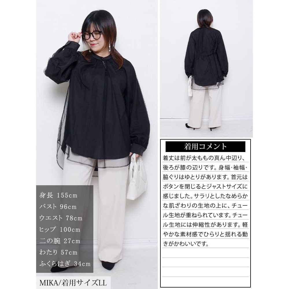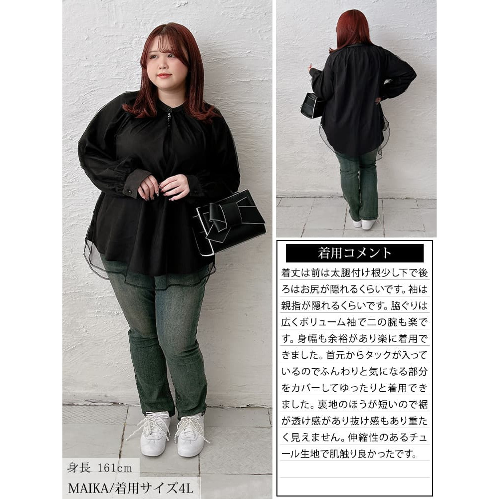 • 大きいサイズ レディース チュールレイヤードスキッパーチュニック6
