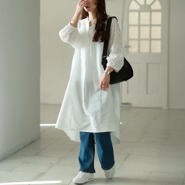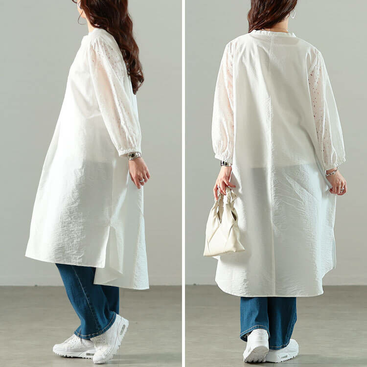 サイドスリットと前後差着丈が軽やかな揺れ感をつくり動く度美しい。