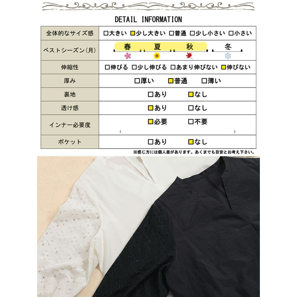 | 素材 | 【本体】綿 80% ナイロン 20%【レース部分】綿 60% ナイロン 40% |