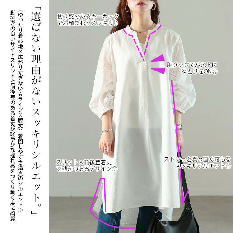 涼しげな質感と接触冷感素材で汗ばむ季節に重宝間違いなしの爽やかチュニック。