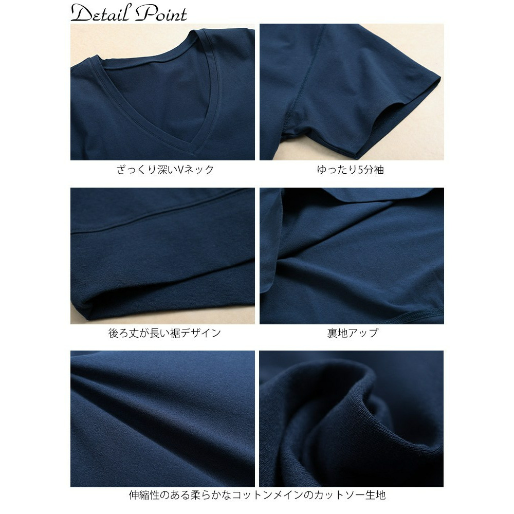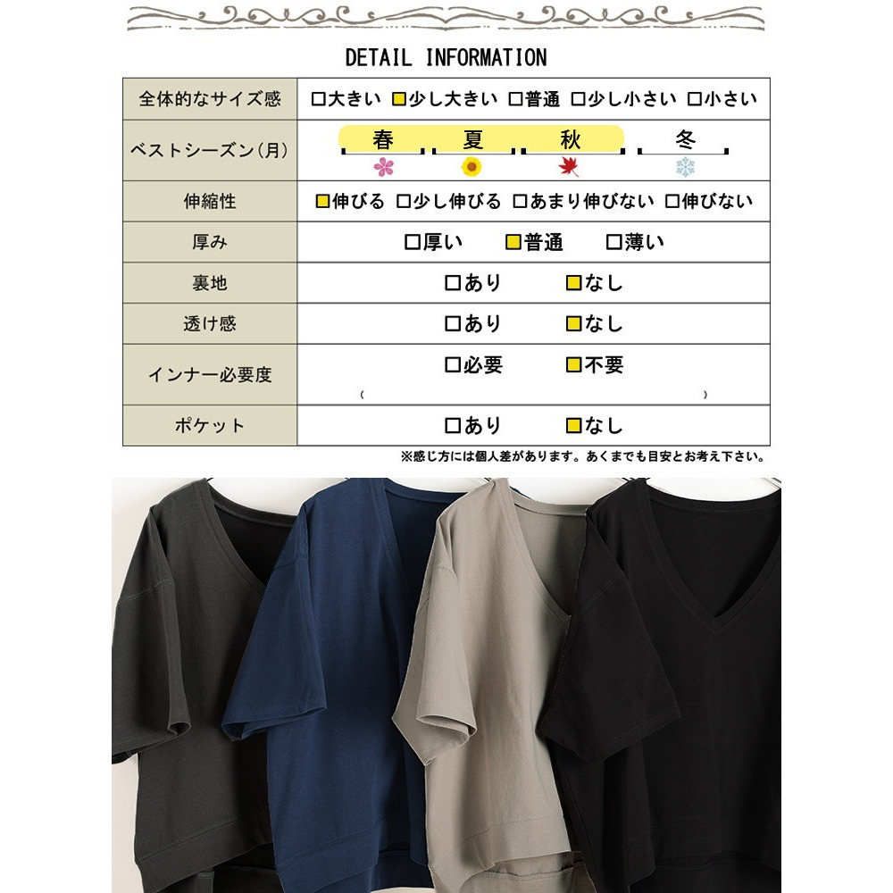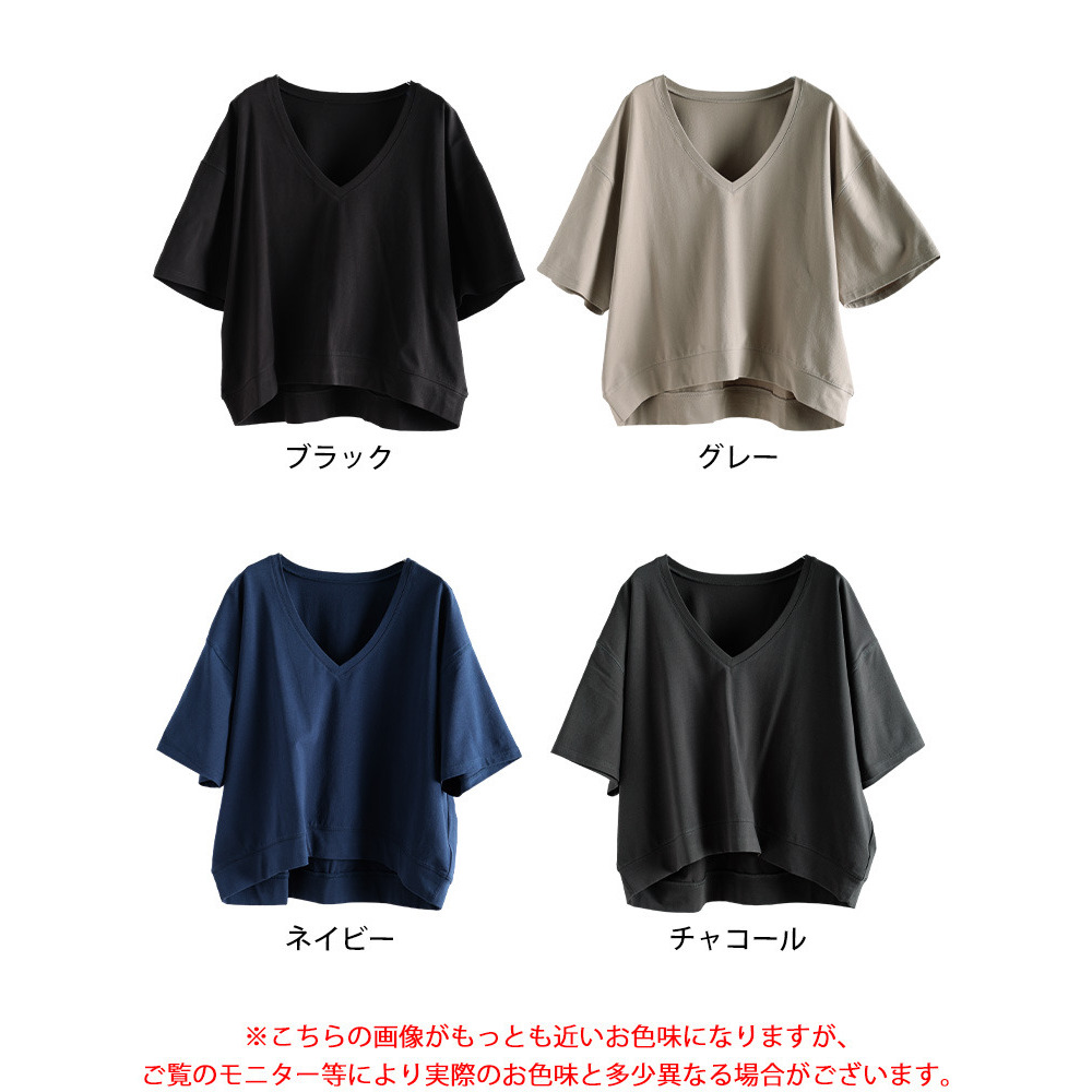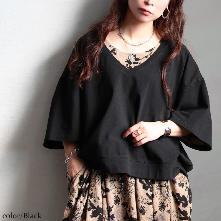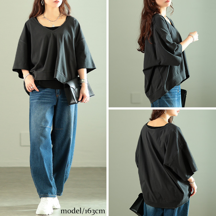 ゆったりとしたサイジングで、ボディラインを拾わず着るだけで体型カバー。ざっくりと深いVネックが顔周りをすっきりさせつつ、デコルテを美しく魅せ、トレンド感を演出。前後差のある後ろ丈が長めにデザインされたシルエットで、気になるヒップもさり気なくカバーしてくれます。