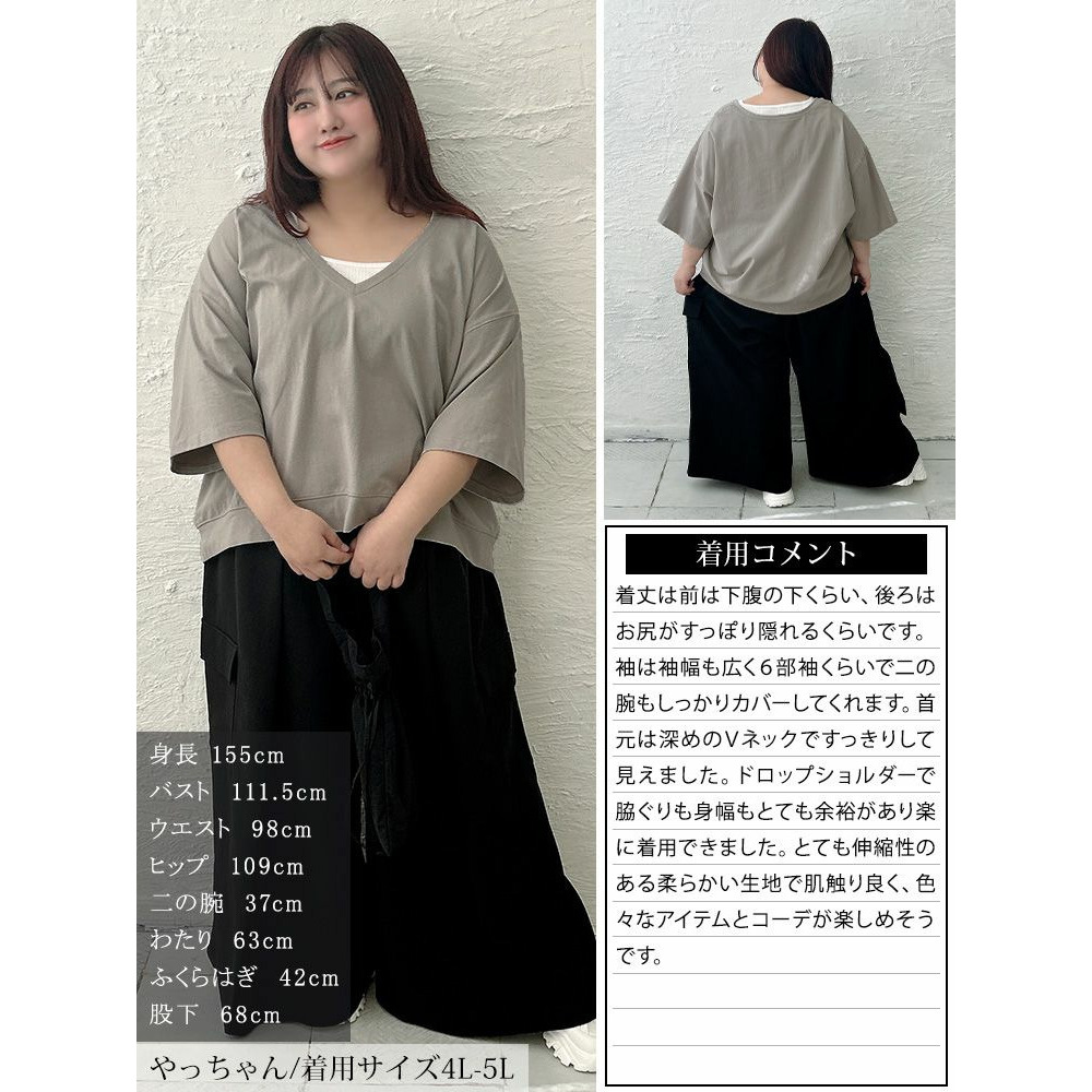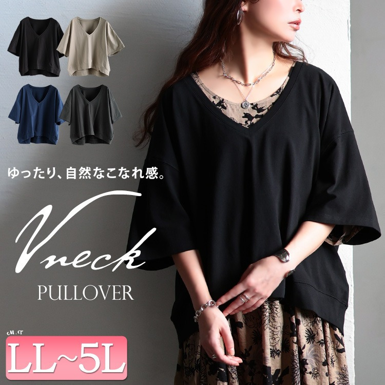 大きいサイズ レディース 深Vネッククロップド丈プルオーバー