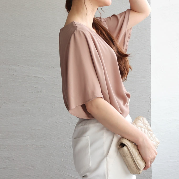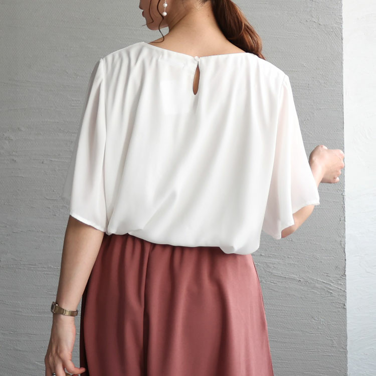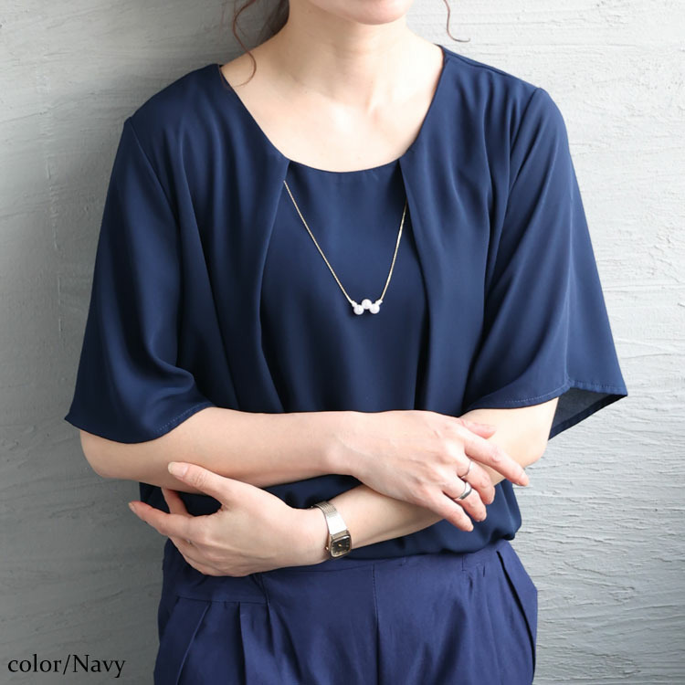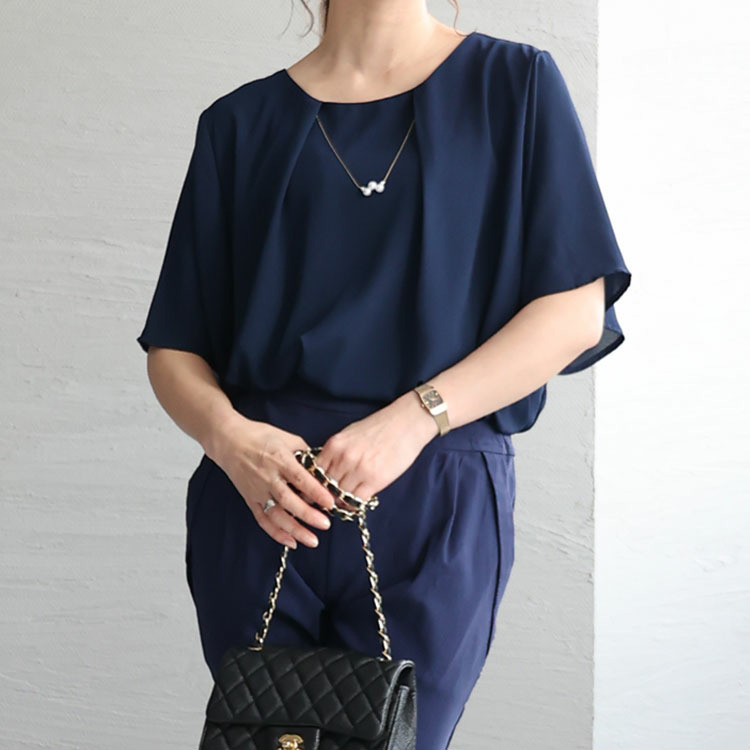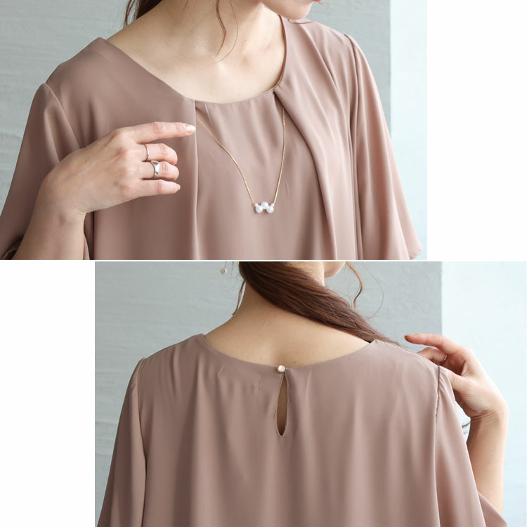 首元にタックを入れることで胸元のラインを綺麗に見せてくれます。