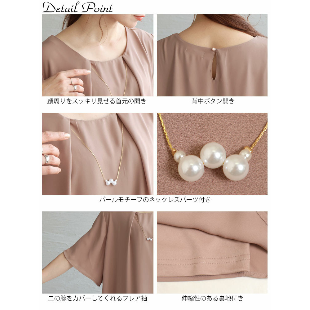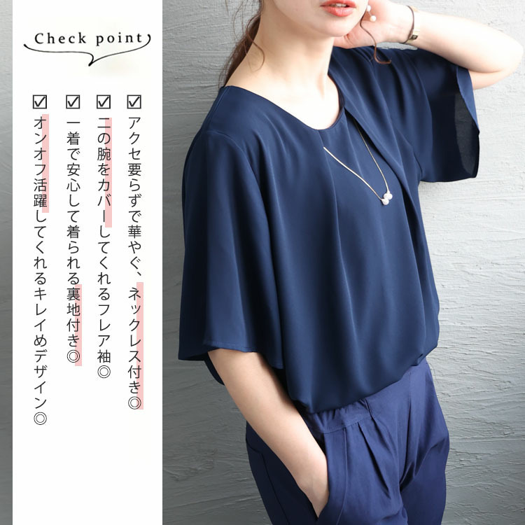 フレア袖で二の腕もすっきりカバーしてくれます。