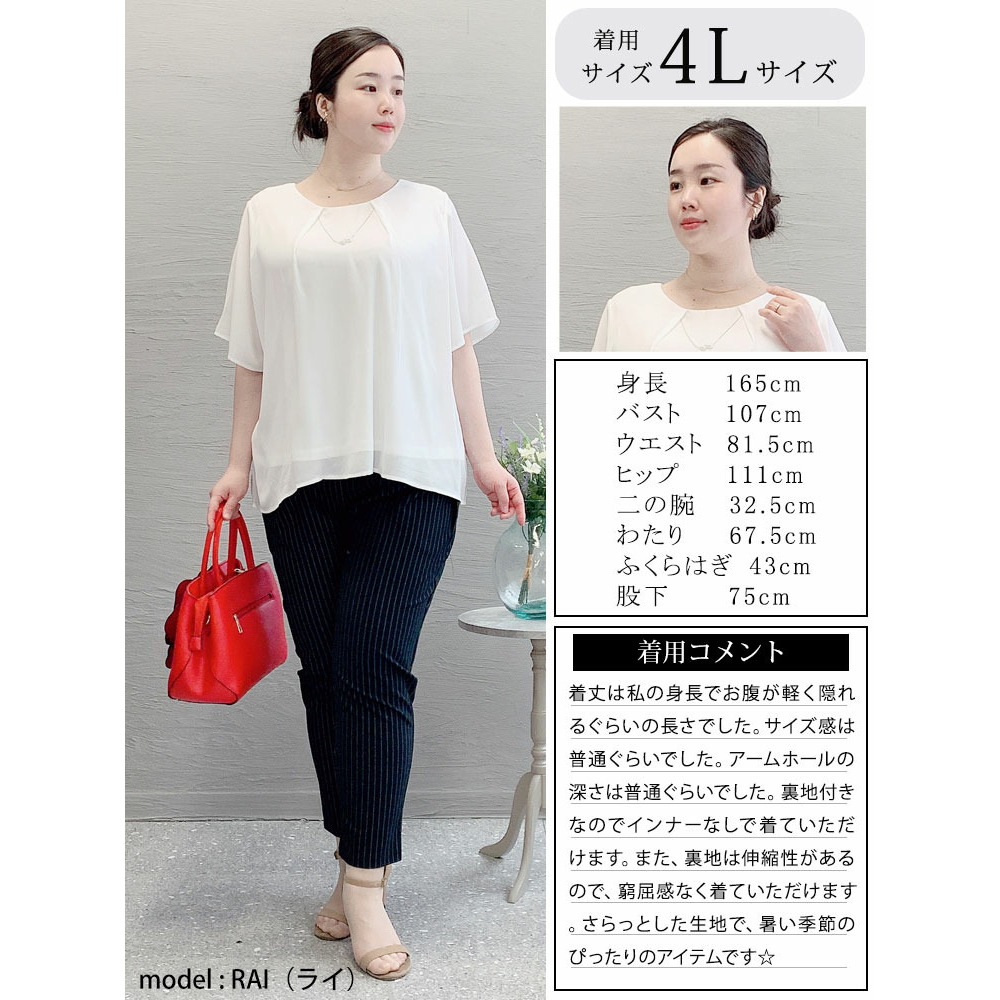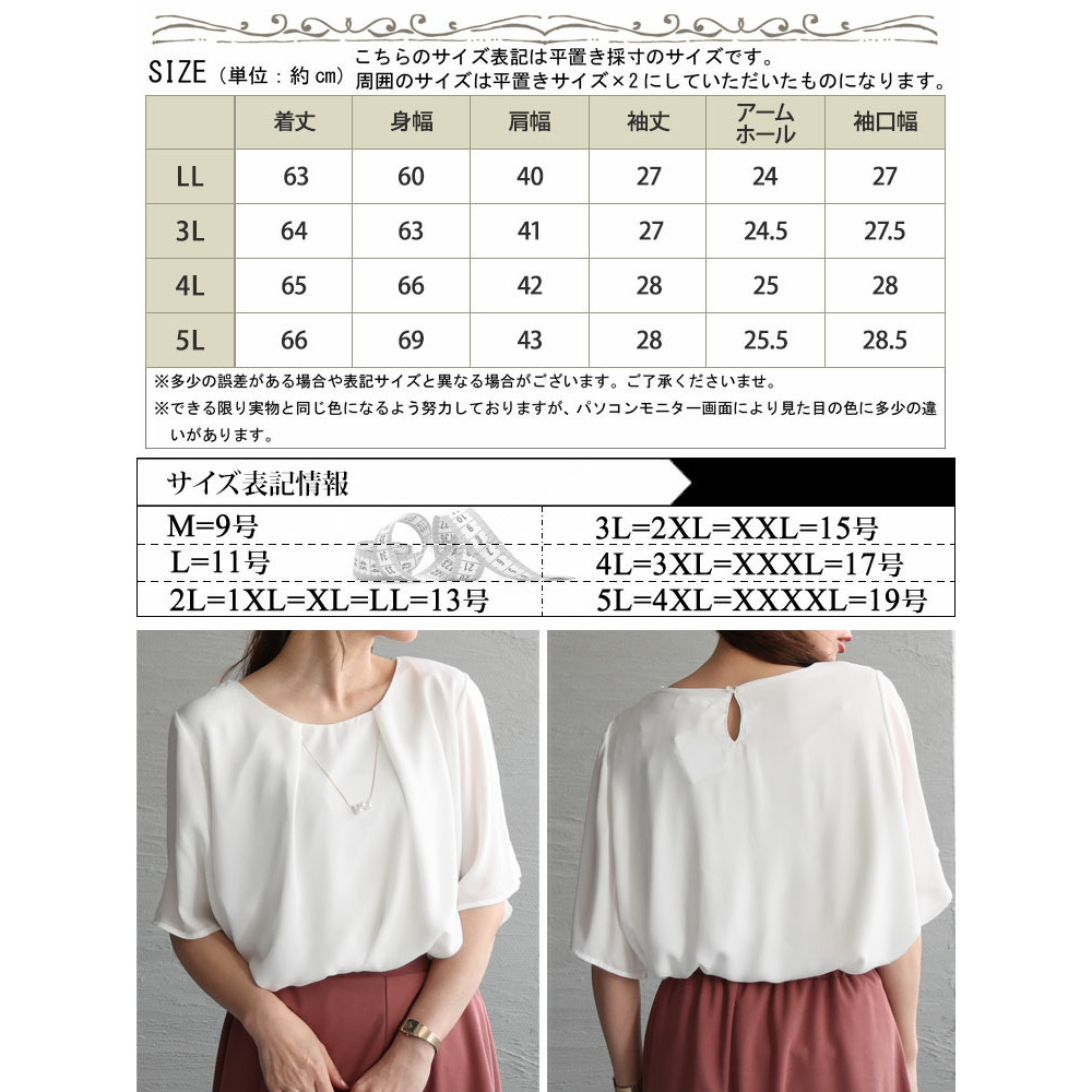サイズ表記 LL 3L 4L 5L 着丈 63cm 64cm 65cm 66cm 身幅 60cm 63cm 66cm 69cm 肩幅 40cm 41cm 42cm 43cm 袖丈 27cm 27cm 28cm 28cm アームホール 24cm 24.5cm 25cm 25.5cm 袖口幅 27cm 27.5cm 28cm 28.5cm