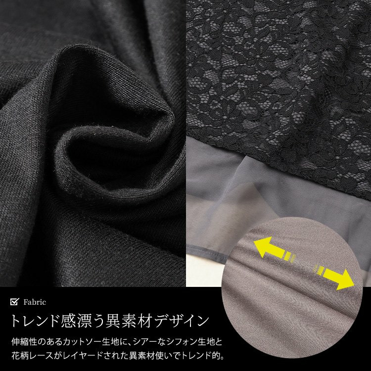 | 素材 | 本体:ポリエステル 75% コットン 25% 別布レース:ポリエステル 100% 別布シフォン:ポリエステル 100% |
