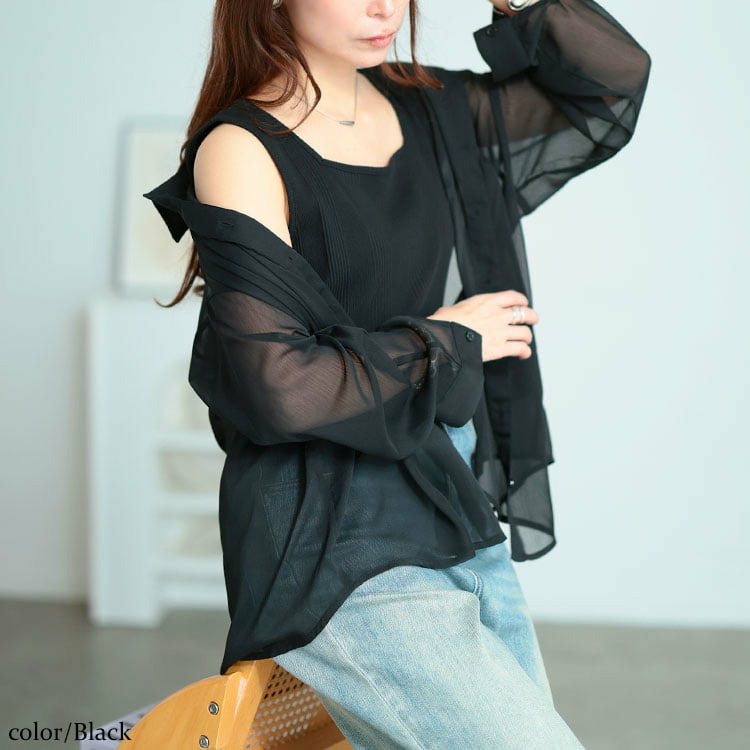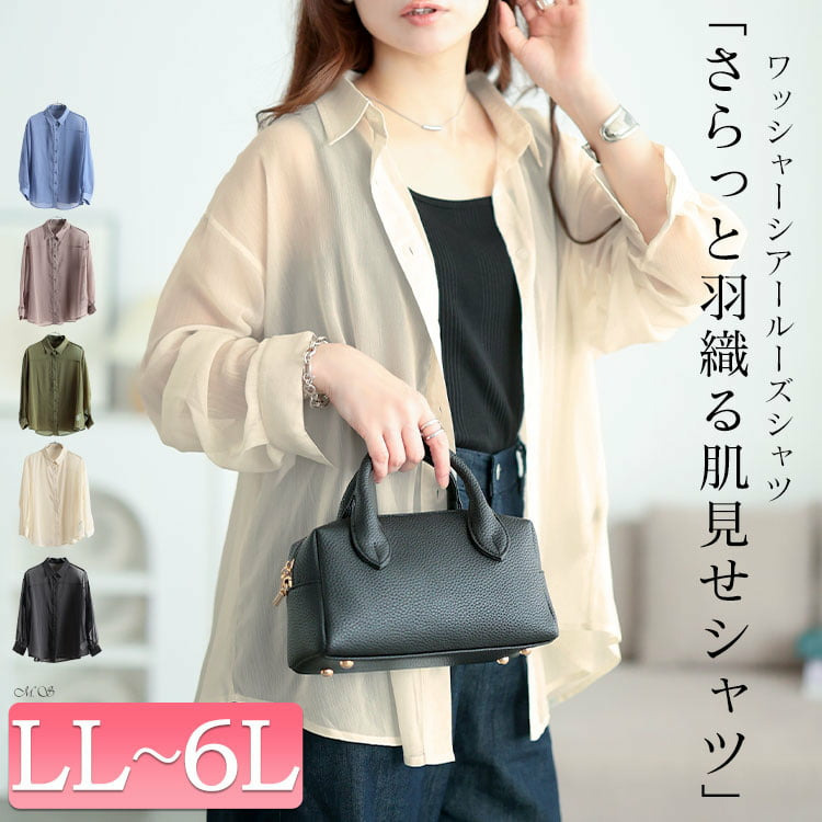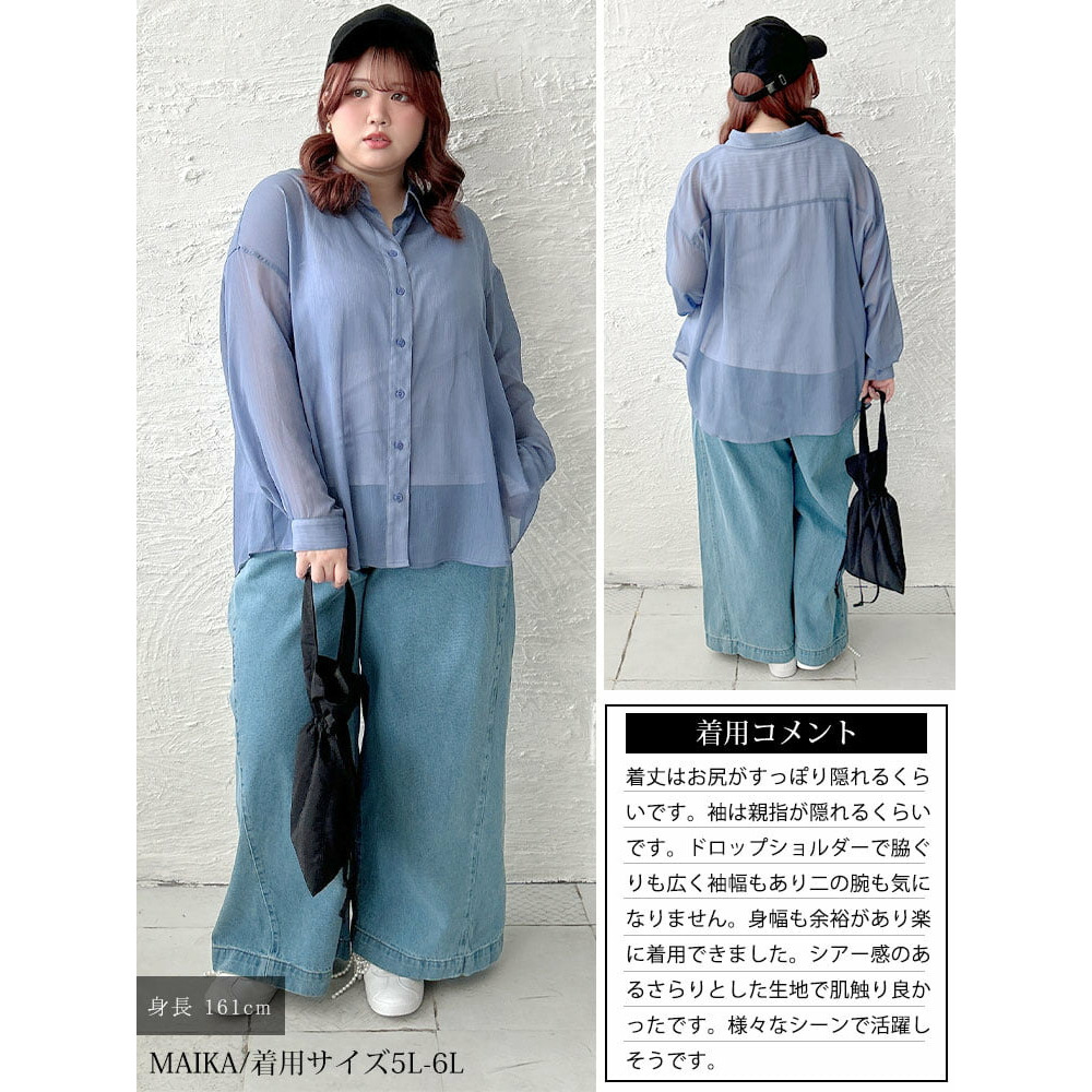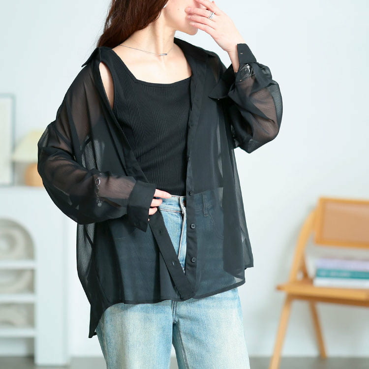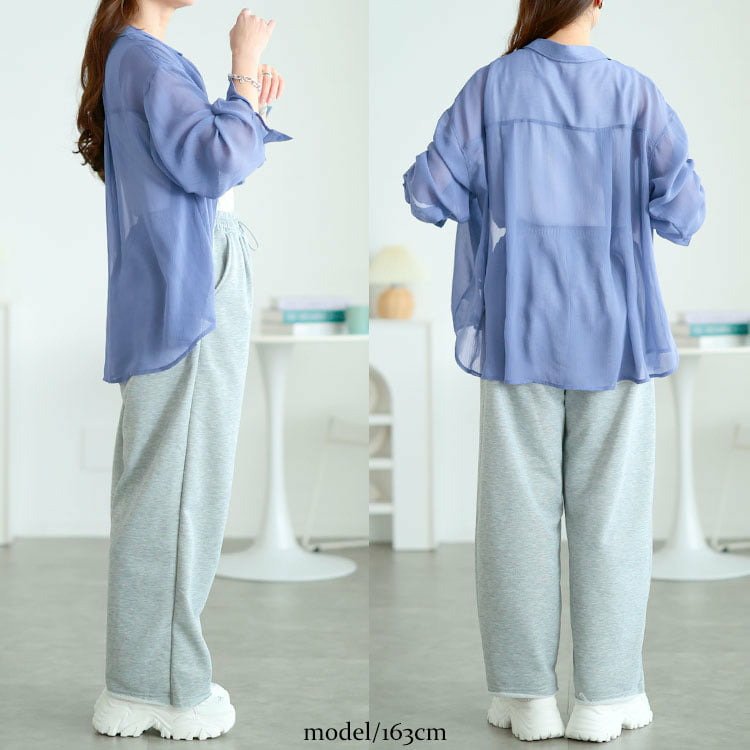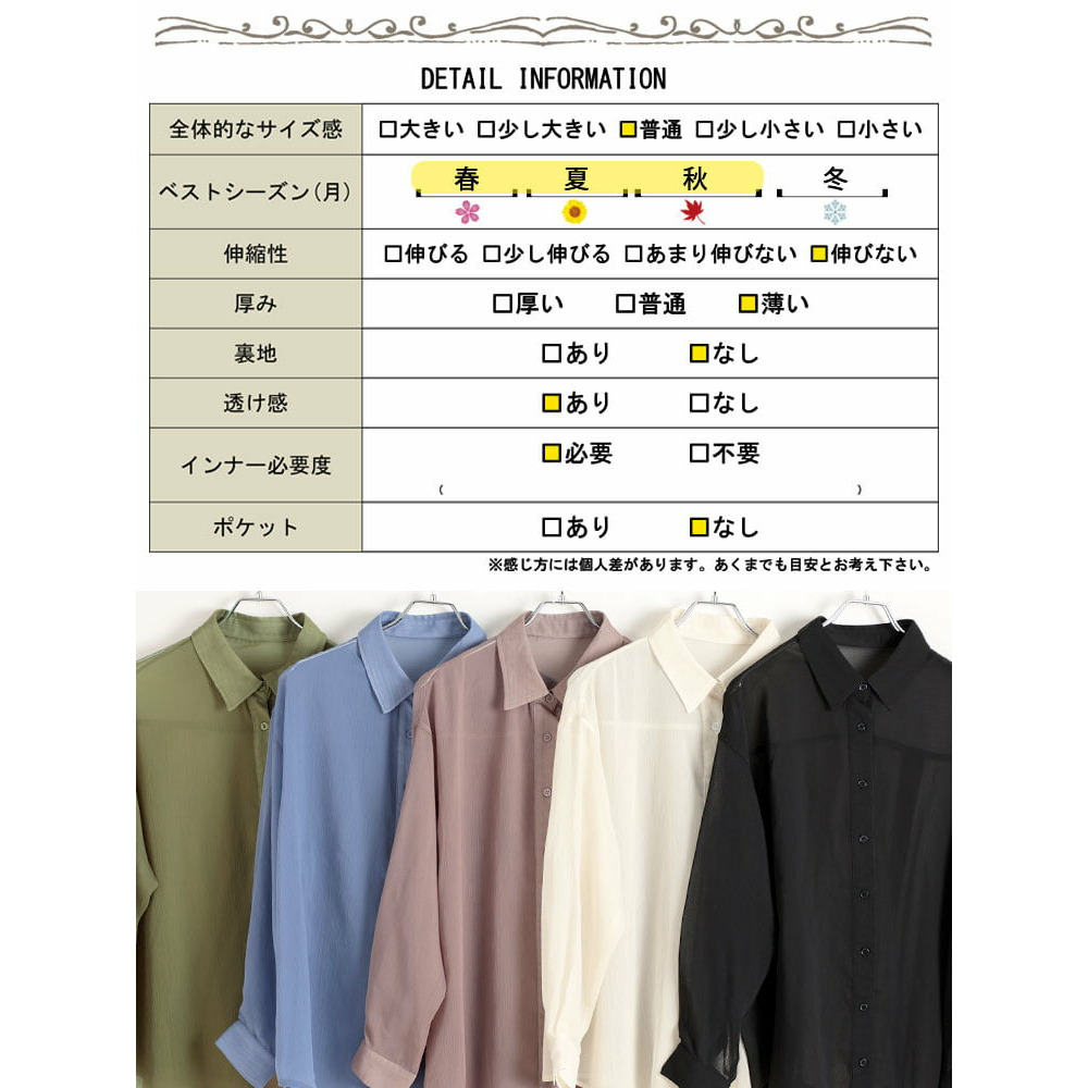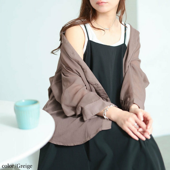 軽やかな透け感が魅力のワッシャーシアールーズシャツです。
