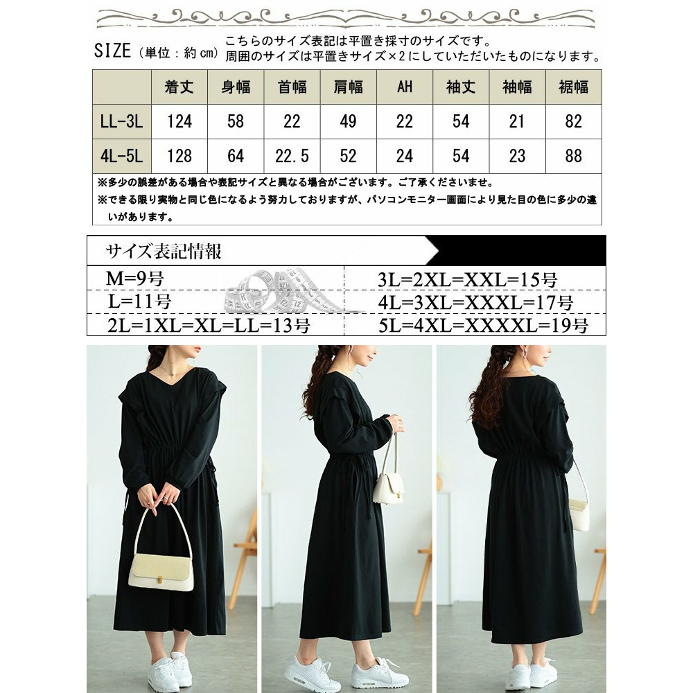 サイズ表記 LL-3L 4L-5L 着丈 124cm 128cm 身幅 58cm 64cm 首幅 22cm 22.5cm 肩幅 49cm 52cm AH 22cm 24cm 袖丈 54cm 54cm 袖幅 21cm 23cm 裾幅 82cm 88cm
