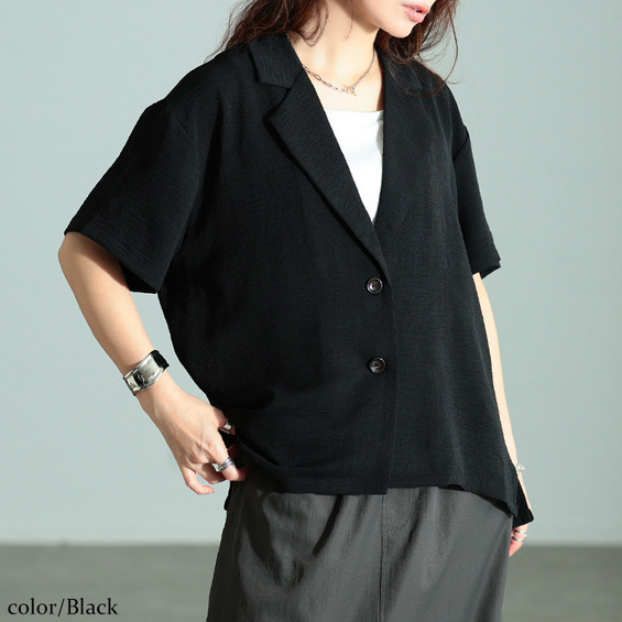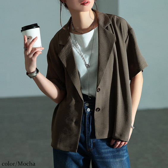 オーバー過ぎないゆったり感と、重たくなり過ぎない丈感で、全体をすっきりと演出。安心の5分袖でしっかり二の腕まわりもカバーします。シングルデザインで、カジュアルなシーンに馴染み、大人のMIXスタイルにぴったりな一着