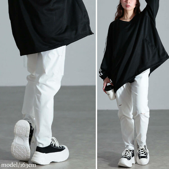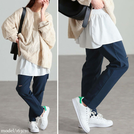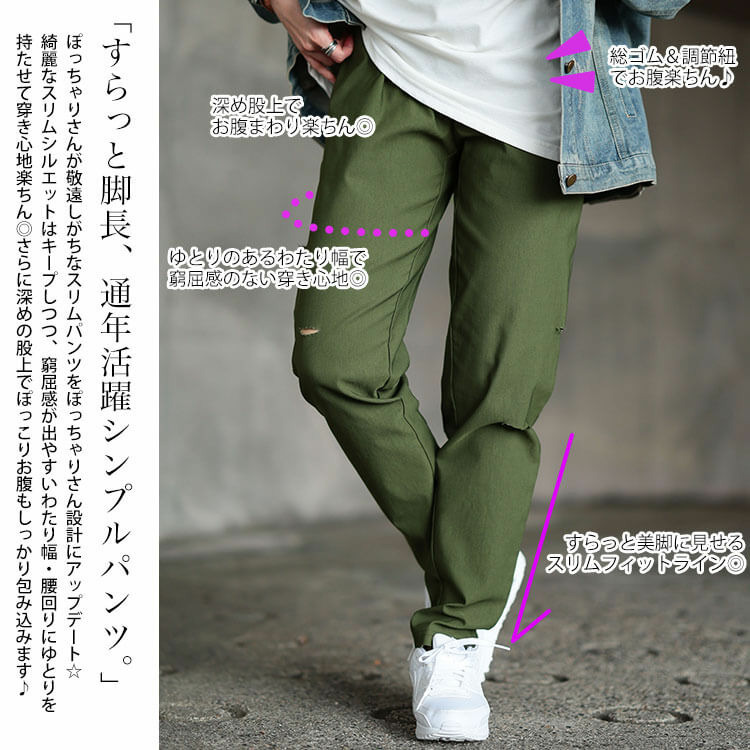 綺麗なスリムシルエットはキープしつつ、窮屈感のないわたり幅・腰回りにゆとりを持たせて穿き心地超楽ちん♪