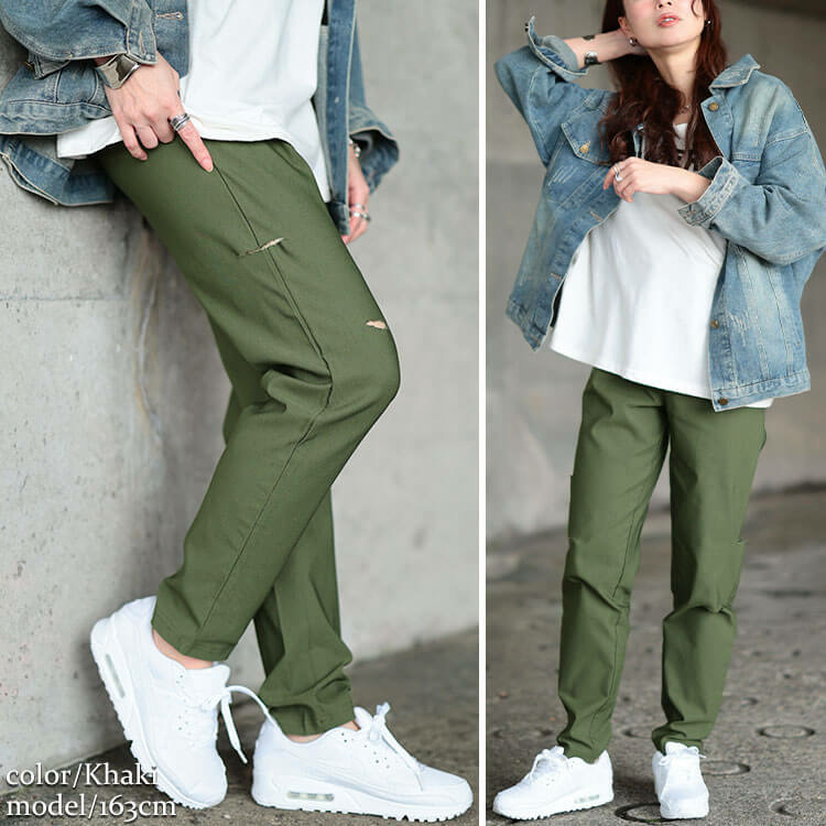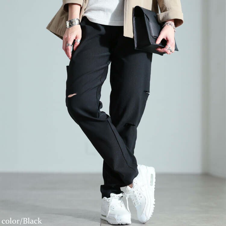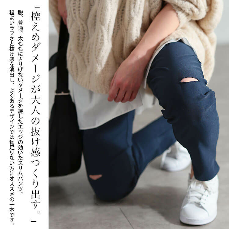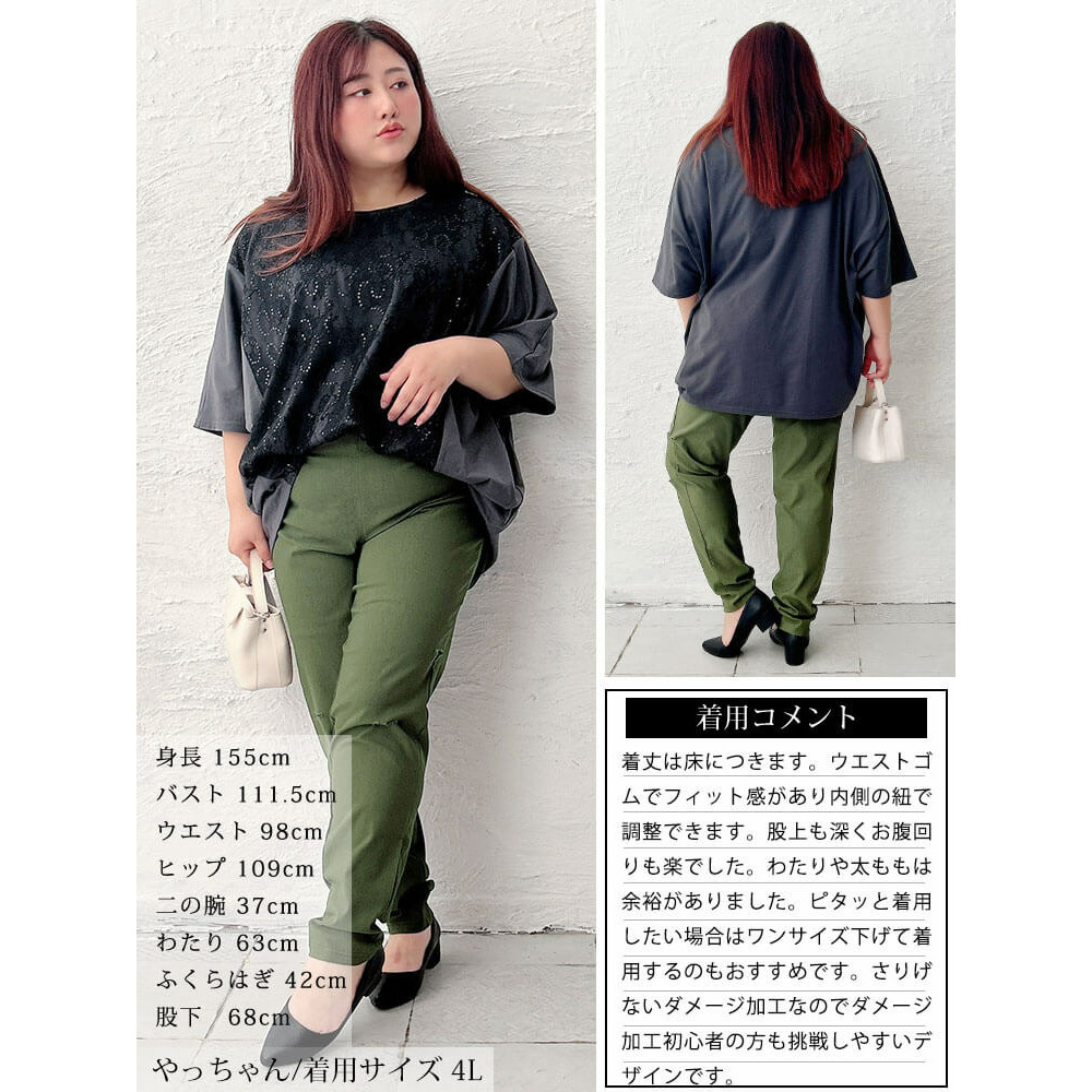 大きいサイズ レディース ストレッチスリムフィットダメージパンツ