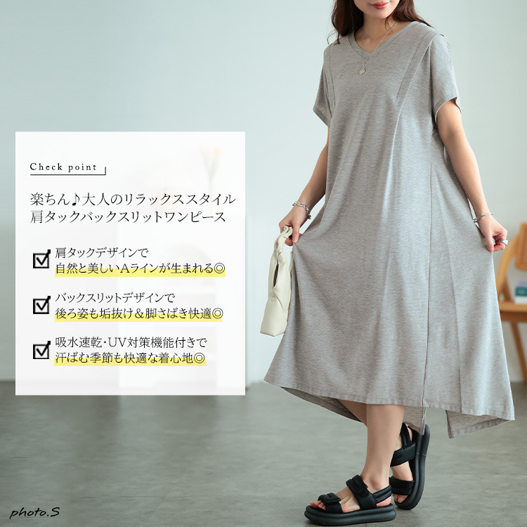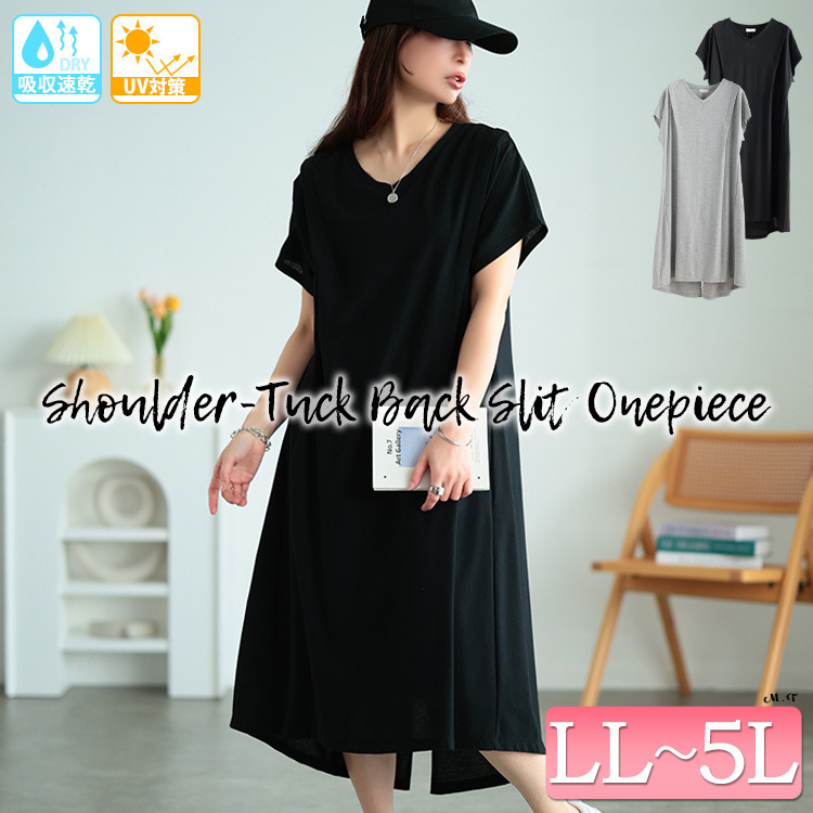 大きいサイズ レディース 吸水速乾&UVカット肩タックワンピース