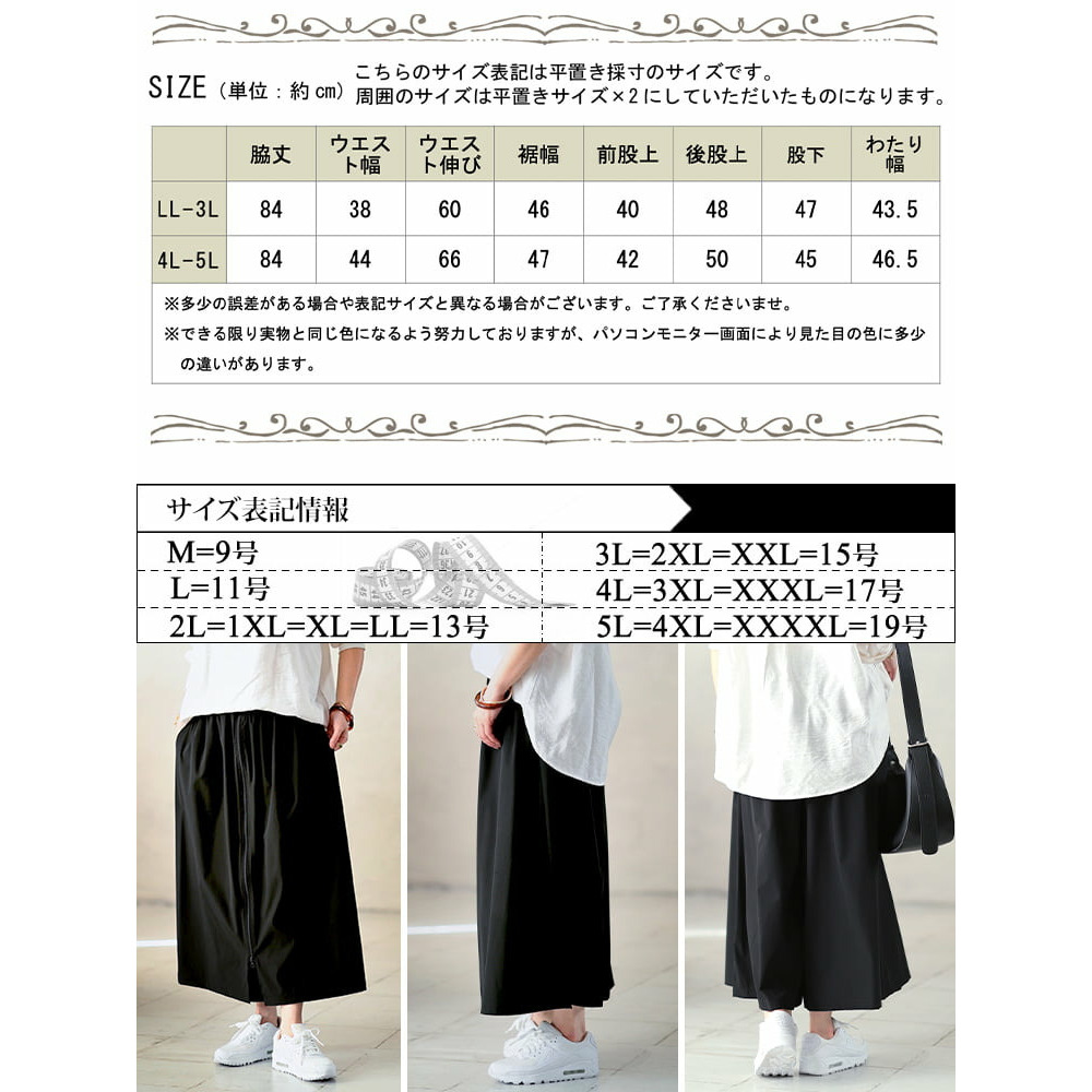 サイズ表記 LL-3L 4L-5L 総丈 85cm 87cm バスト幅 78cm 84cm 肩幅 104cm 110cm 袖口幅 23cm 25cm 天幅 17cm 18cm 裾幅 67cm 73cm 裄丈 65cm 67cm